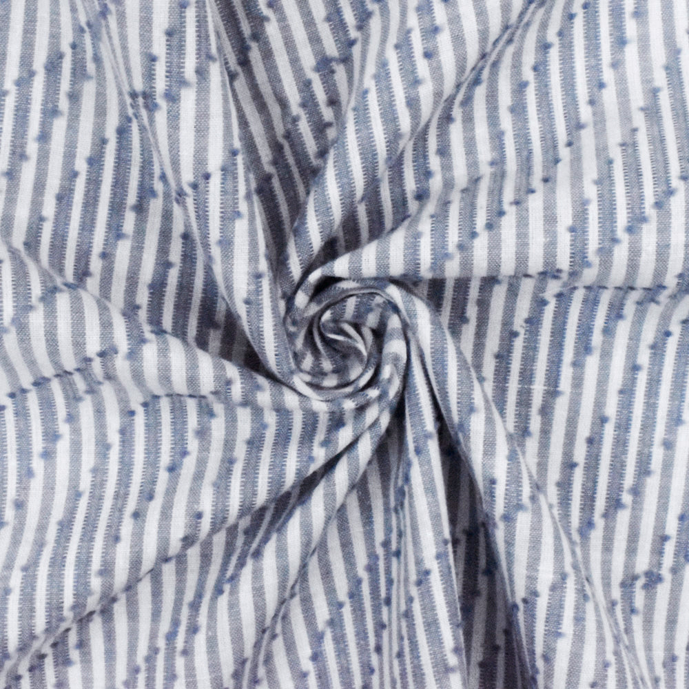 Dusty Blue-White Wave Jacquard Stripe Cotton Shirting Fabric