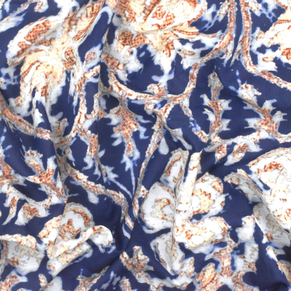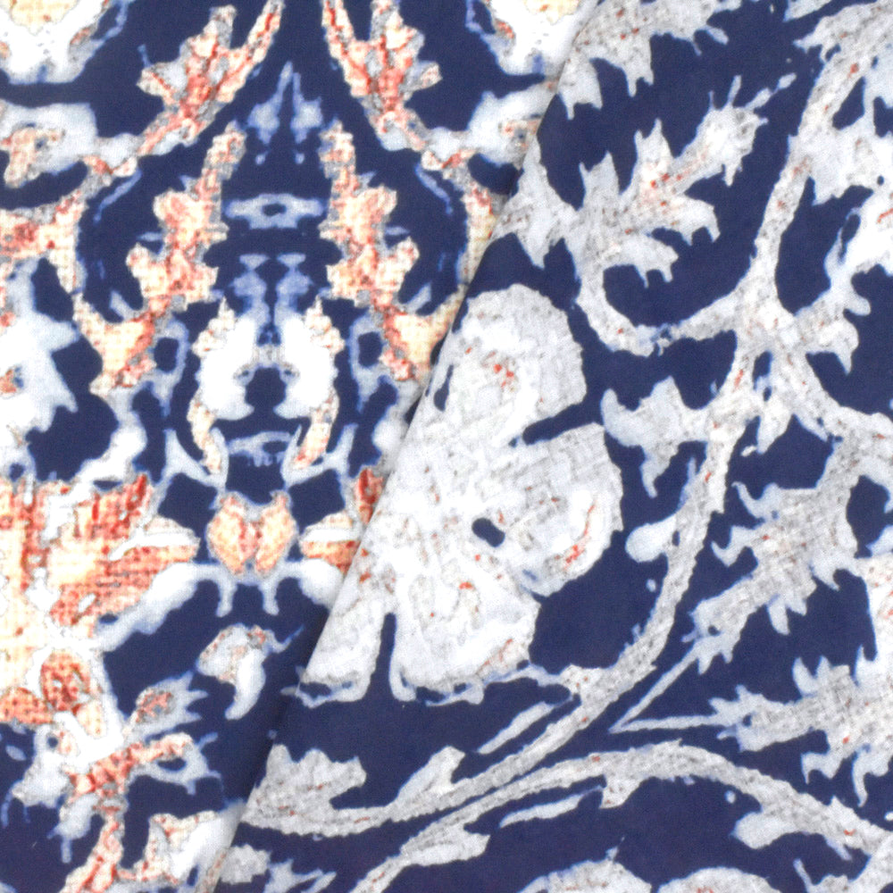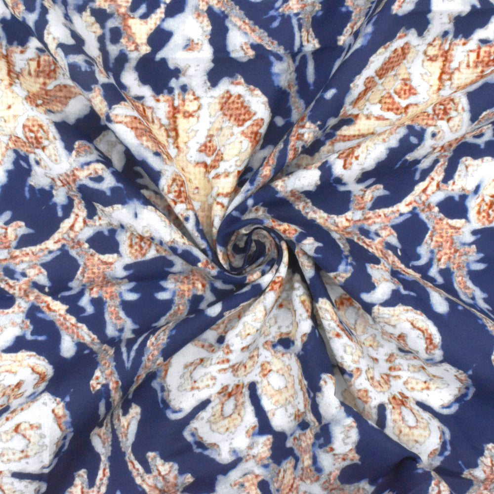 Blue-Beige-Multi Famous Designer Baroque Floral Printed Cotton Lawn Fabric