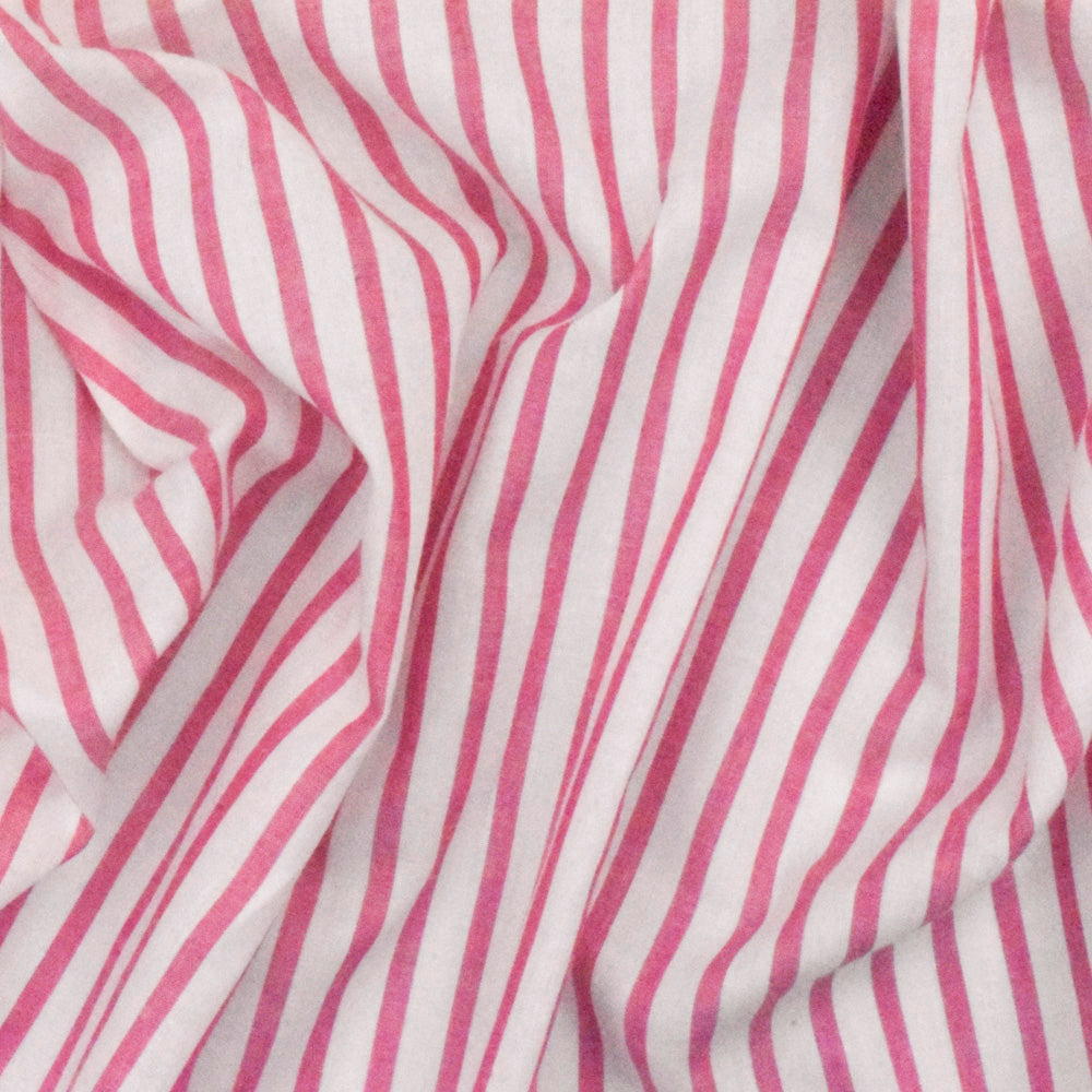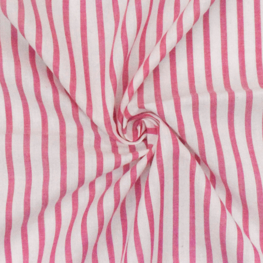 Sweet Pink-White Stripe Cotton Lawn Woven Fabric