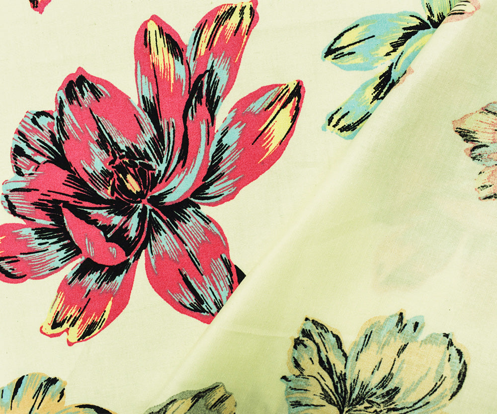 Light Yellow-Multi Cotton Floral Print Stretch Spandex Poplin Woven Fabric
