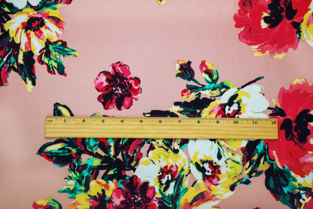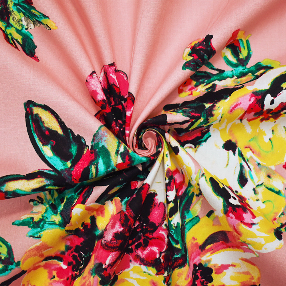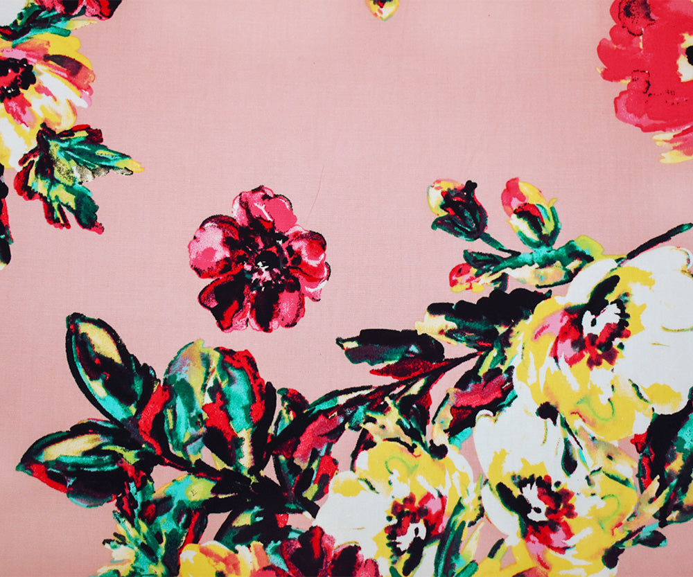 Pink-Green-Multi Cotton Floral Printed Stretch Spandex Poplin Woven Fabric