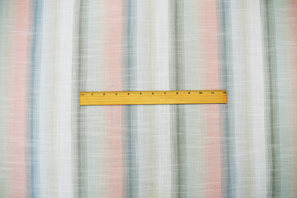 Pink-Blue-Multi Cotton-Rayon Famous Maker Vertical Stripe Slub Woven Fabric