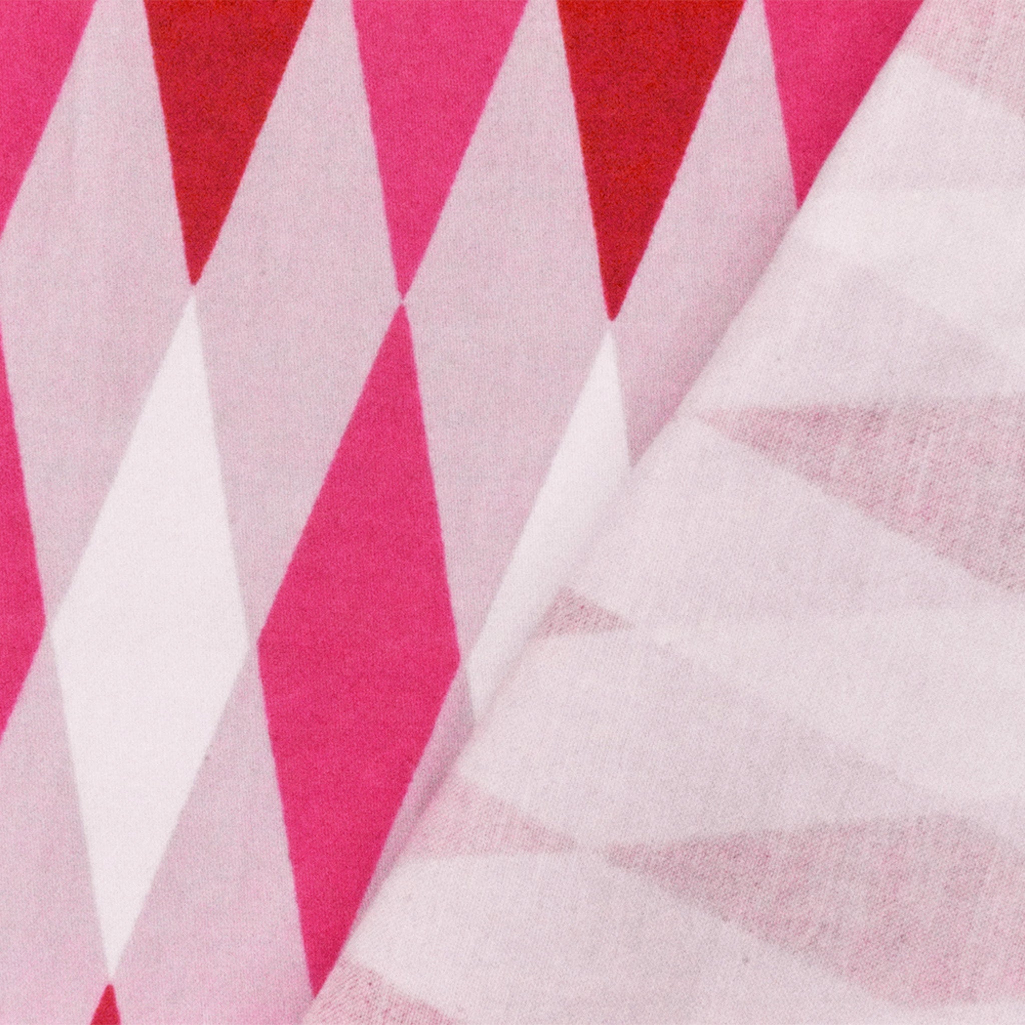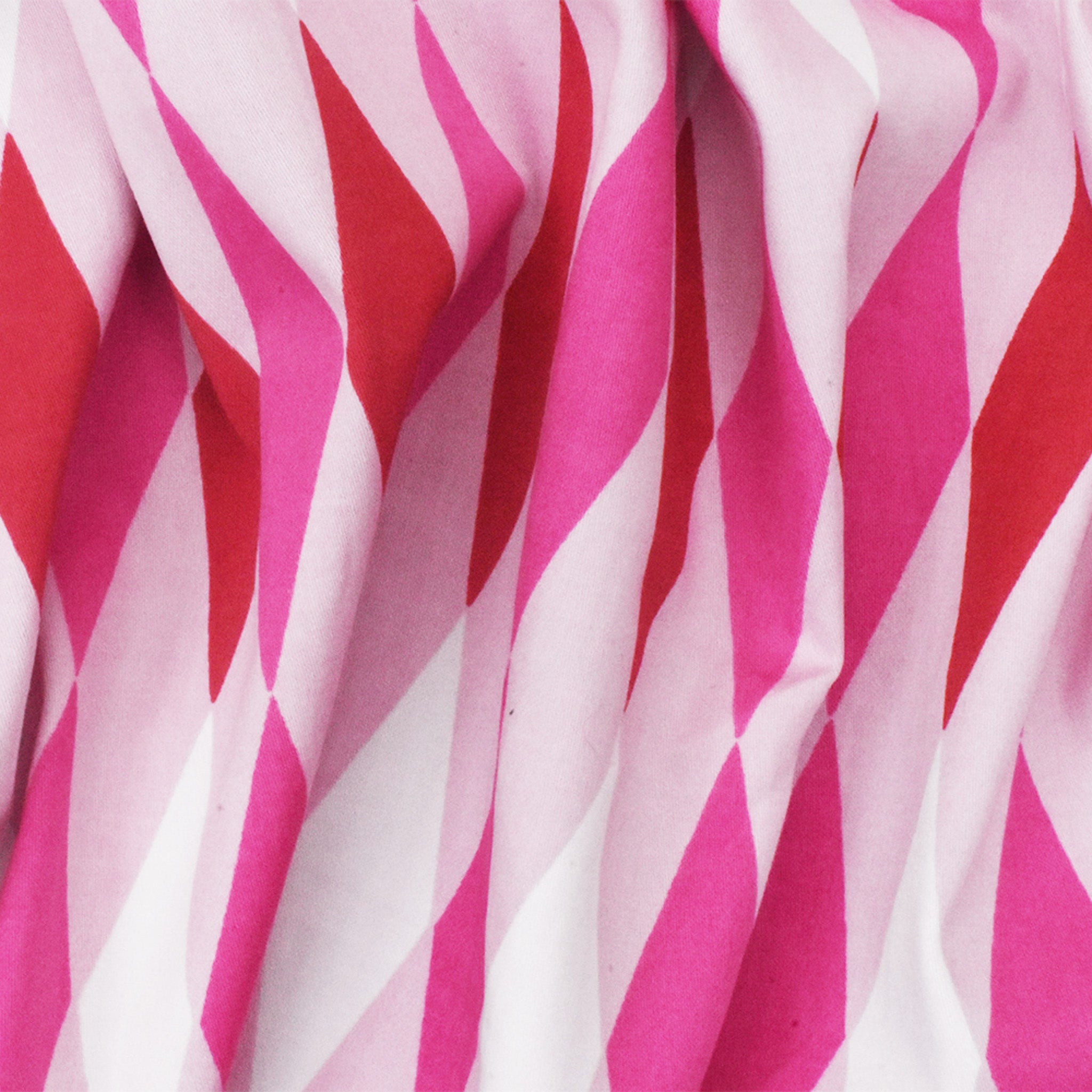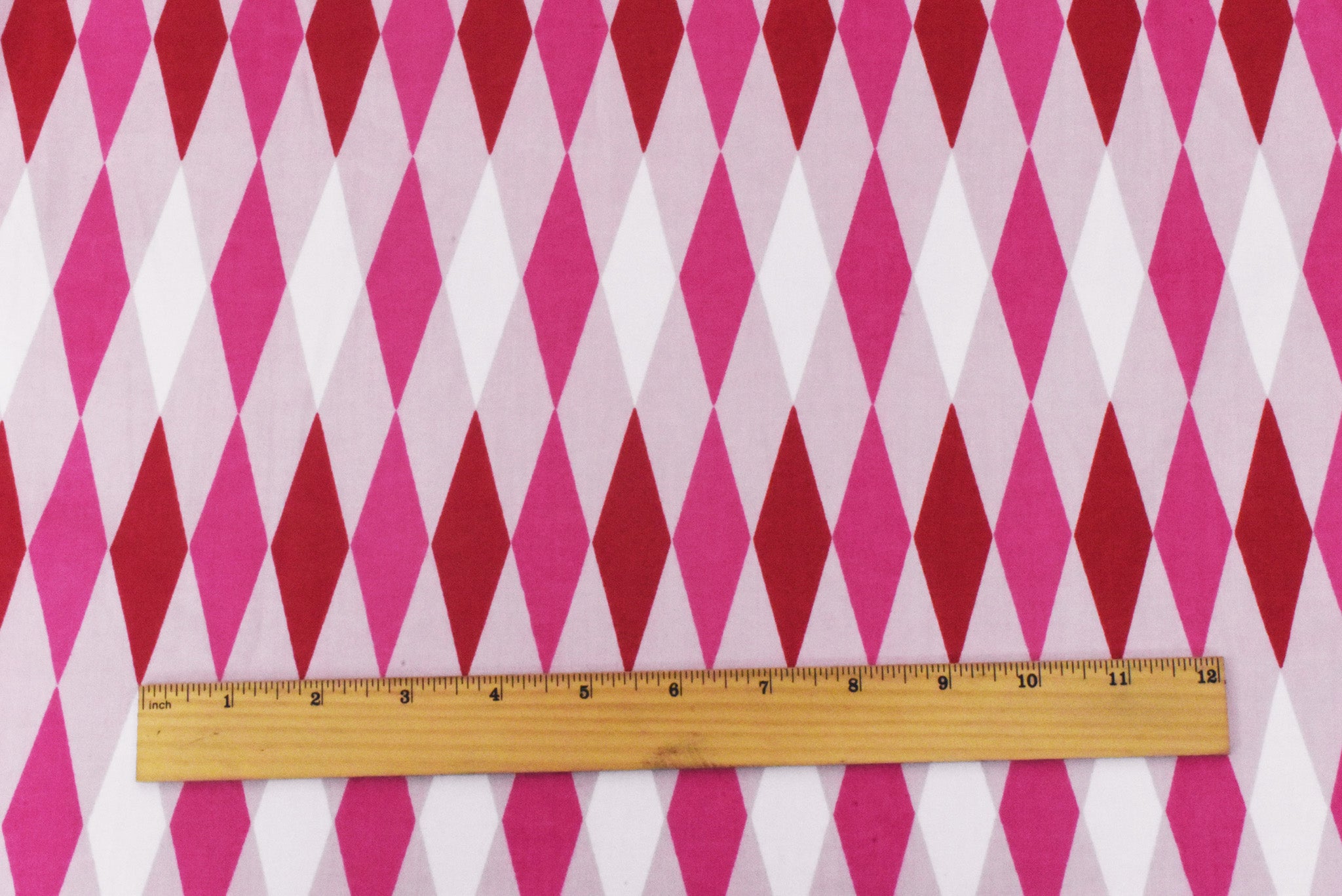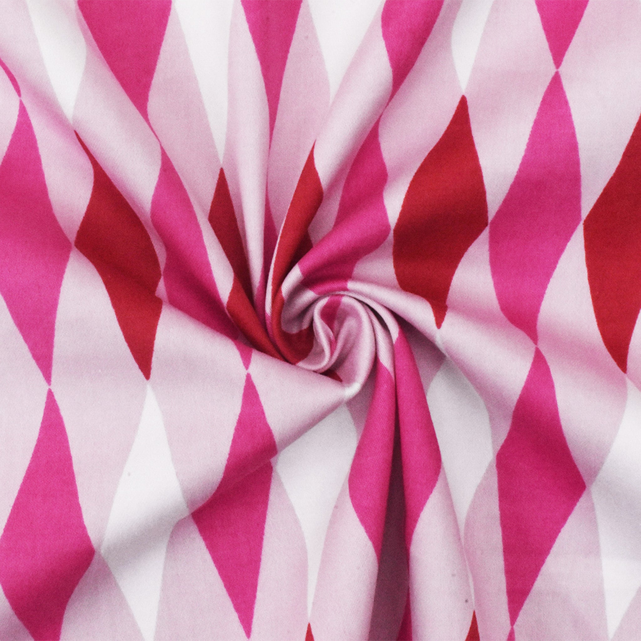 Pink-Red-Multi Diamond Printed Stretch Cotton Twill Sateen Woven Fabric