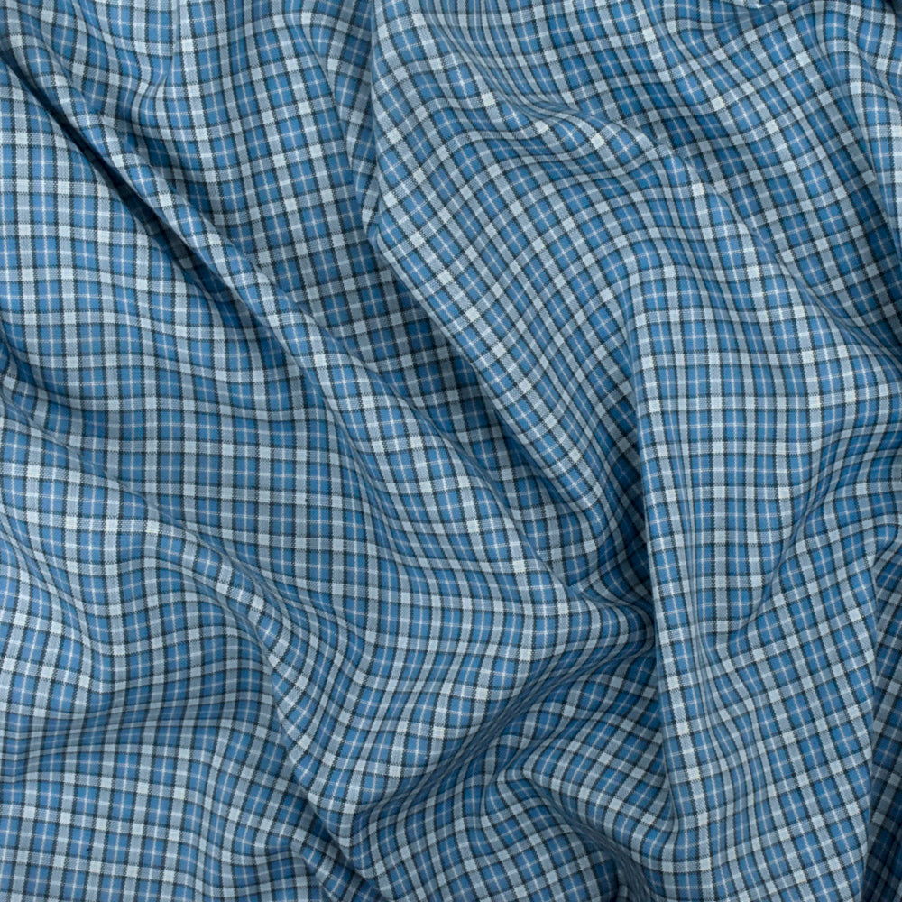 Ocean Blue-White-Multi Plaid Cotton Polyester Madras Woven Fabric