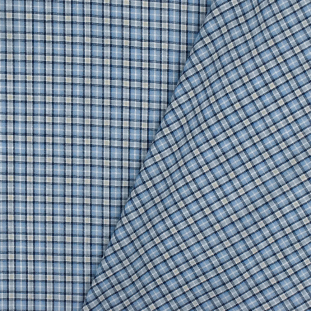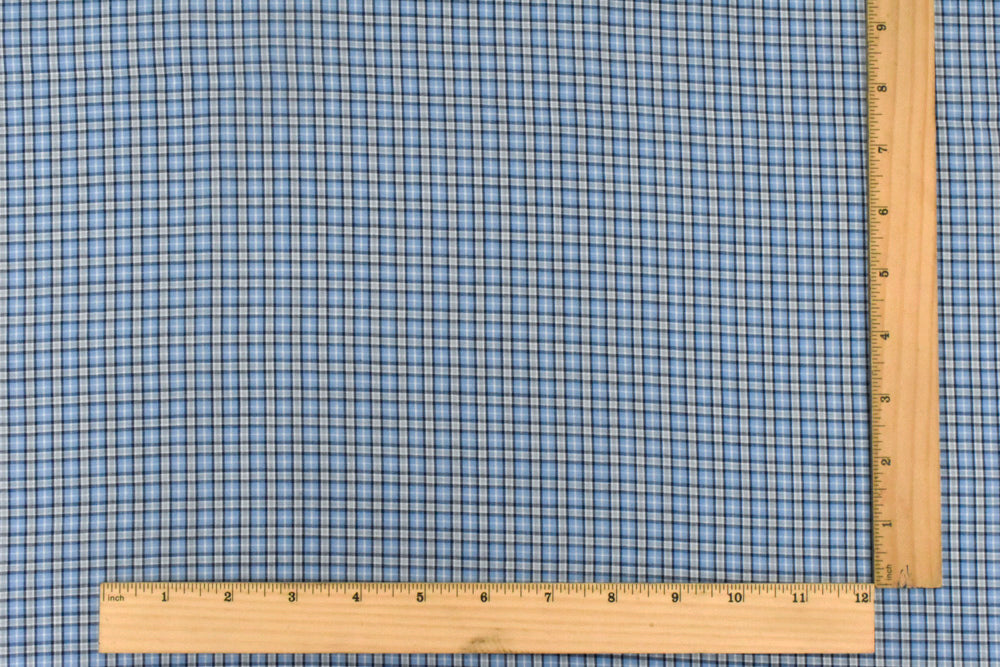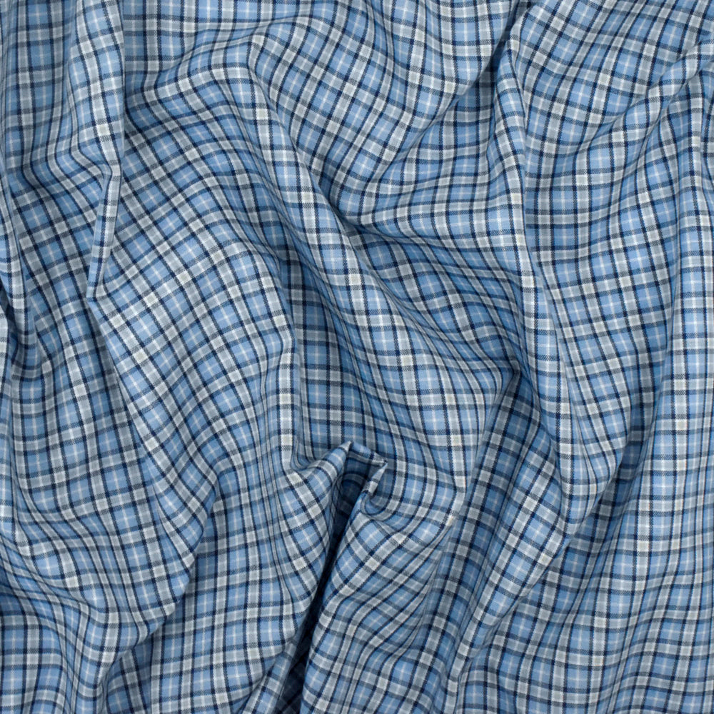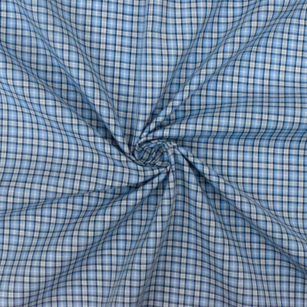 Sky Blue-White-Multi Plaid Cotton Polyester Madras Woven Fabric