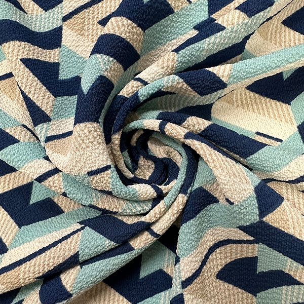 Blue Multi Geometric Poly Print High Crepe Fabric