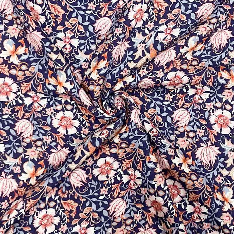 Blue-Pink-Multi Rayon Floral Printed Momie Crepe Woven Fabric