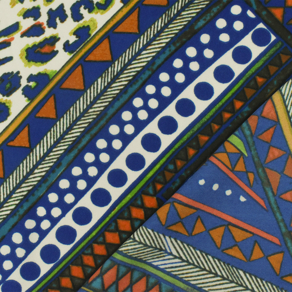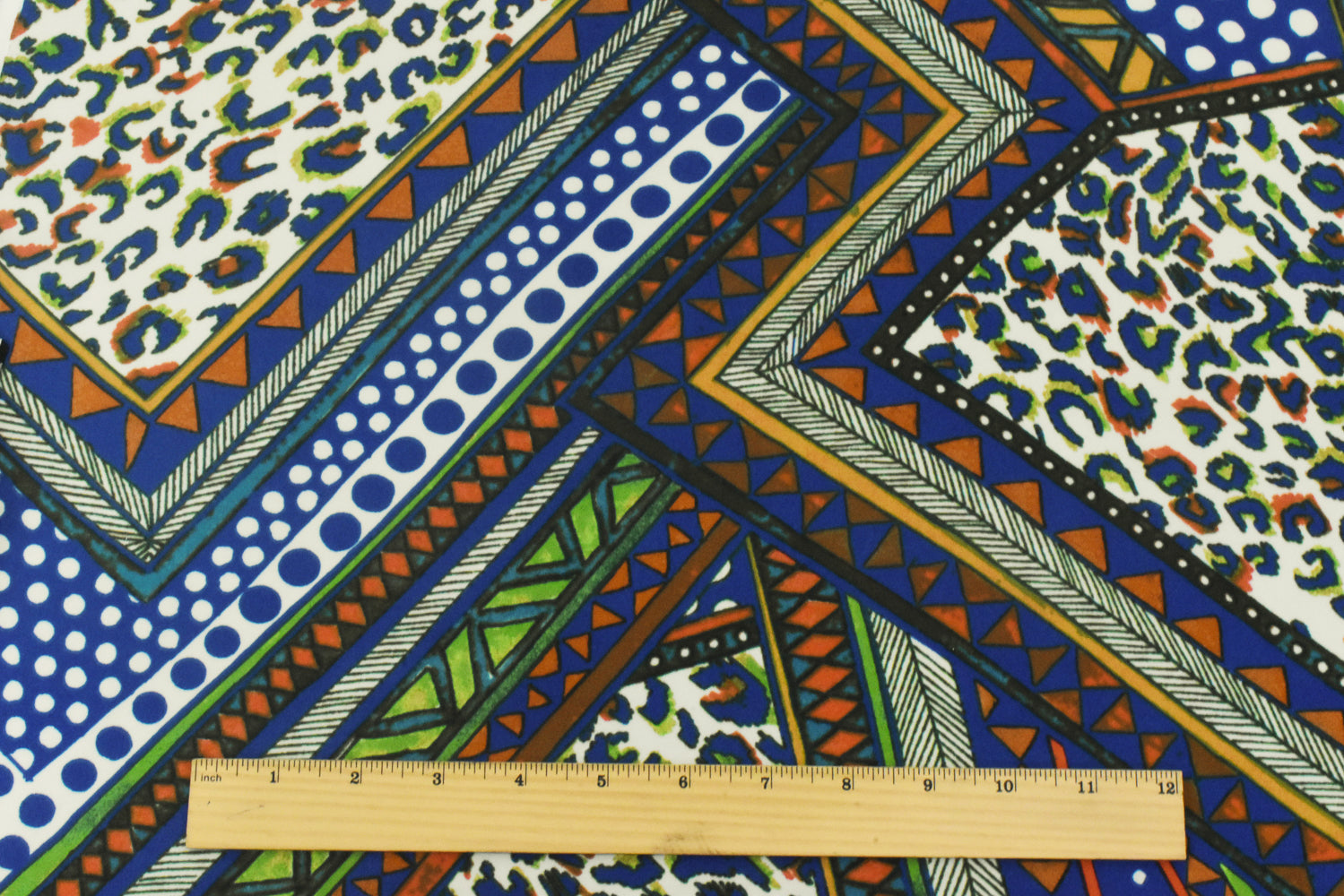 Ink Blue-Green-Multi Tribal Printed Poly Momie Crepe Woven Fabric