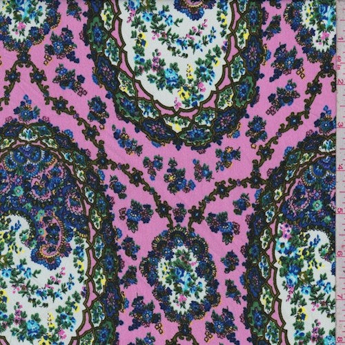 Pink/Multi Pendant Trellis Printed Crepe Faille Fabric