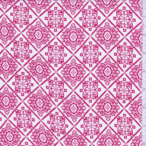 White/Crimson Medallion Diamond Rayon Crepe Fabric