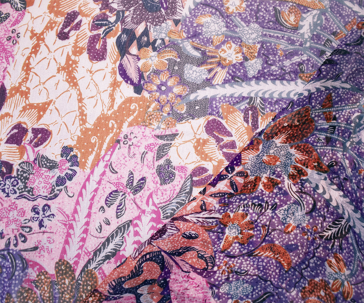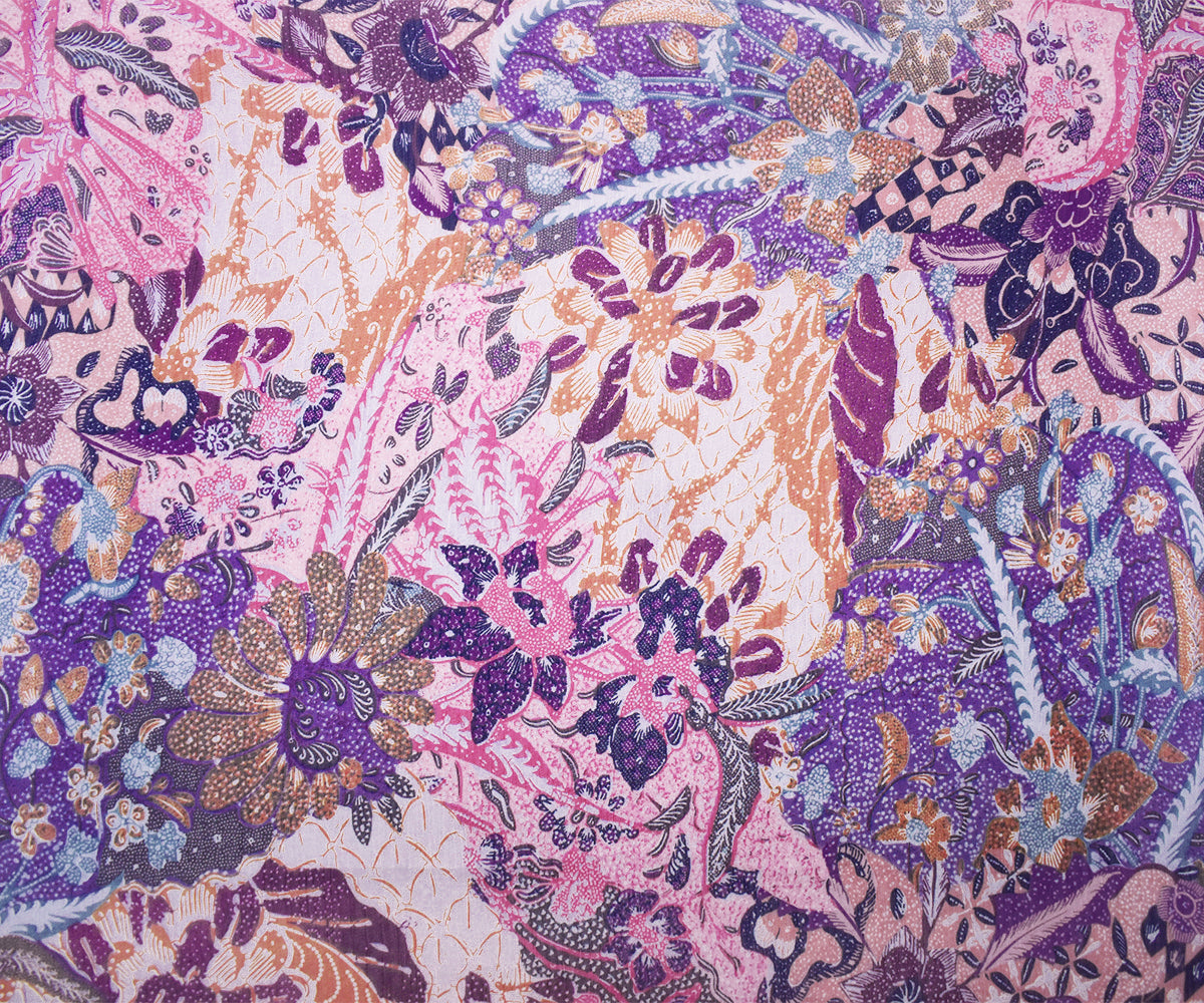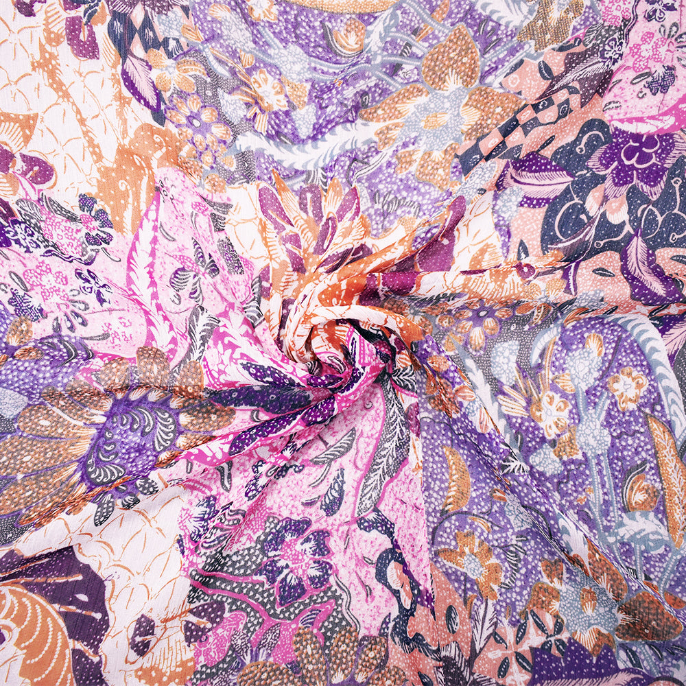 Pink-Purple-Multi Poly Ink Floral Printed Crinkle Yoryu Chiffon Woven Fabric