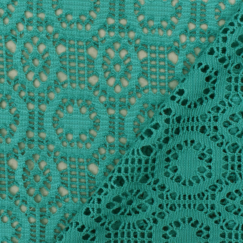 Beach Teal Medallion Stretch Poly Crochet Knit Fabric