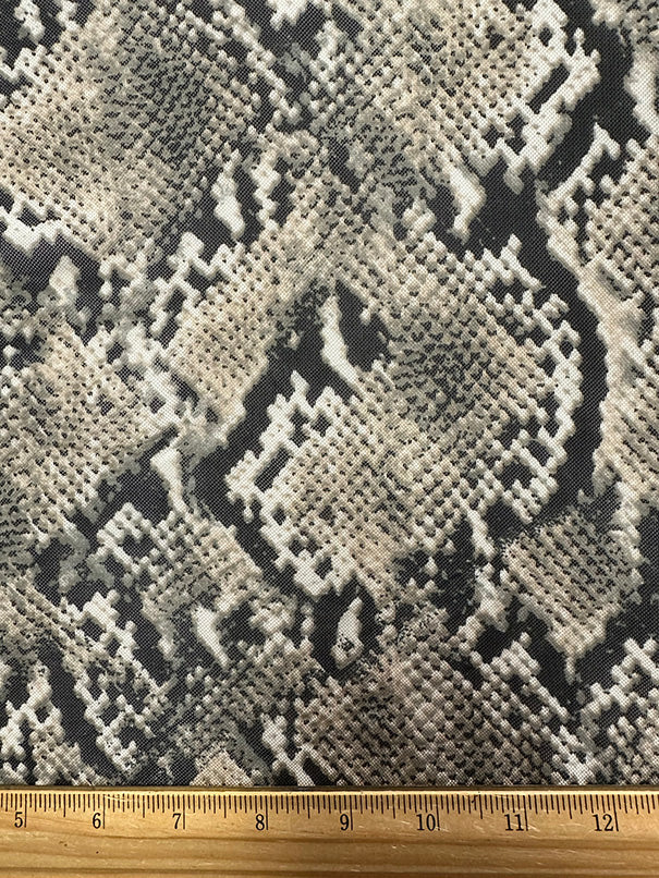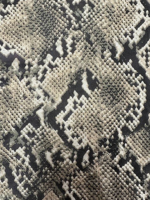 Beige Multi Snakeskin Print Stretch Mesh Fabric