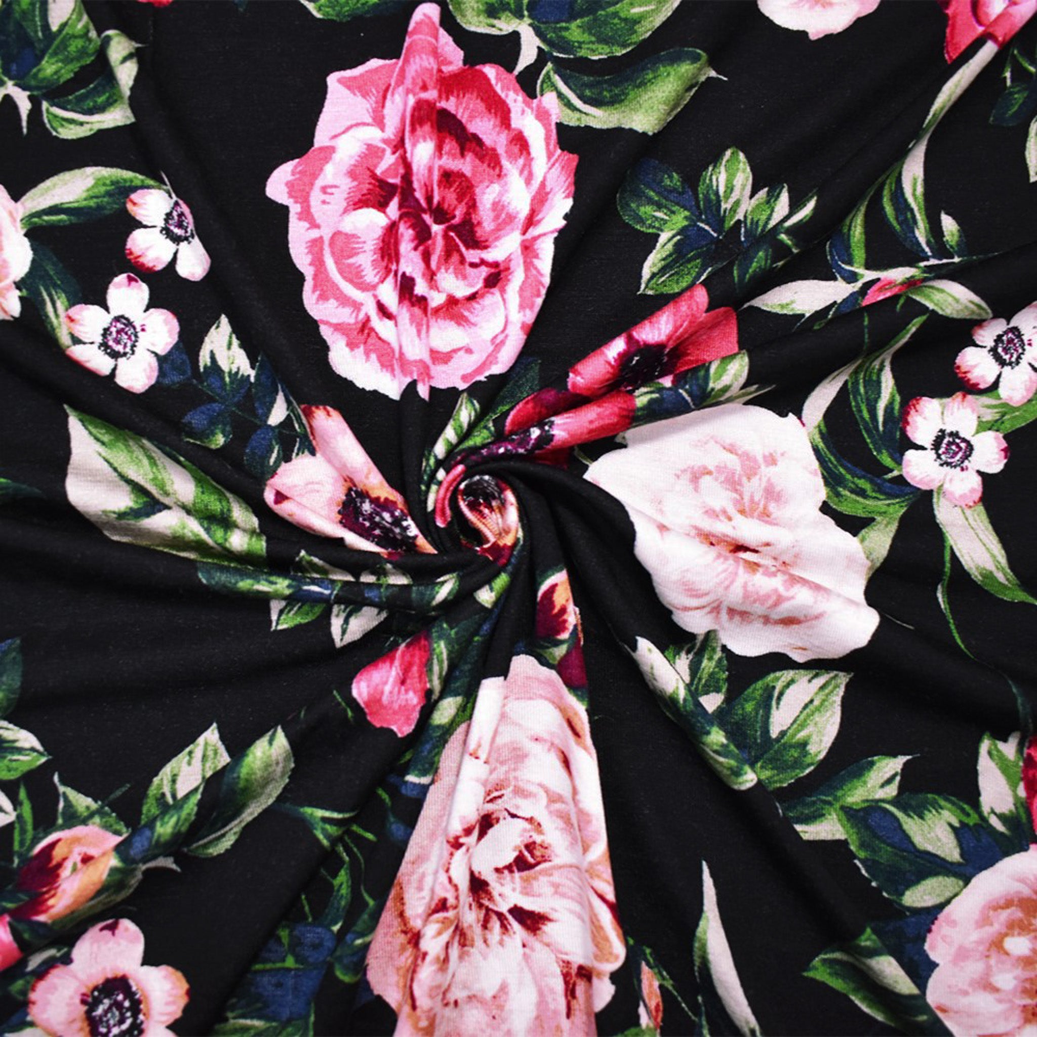 Black-Pink-Multi Rayon Stretch Spandex Floral Jersey Knit Fabric