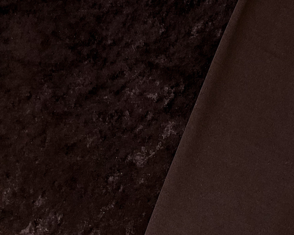 -Luxurious crushed velvet knit with poly-spandex stretch, featuring a dimensional crushed texture and soft hand feel. The two-way stretch offers comfortable movement with a lustrous sheen finish.