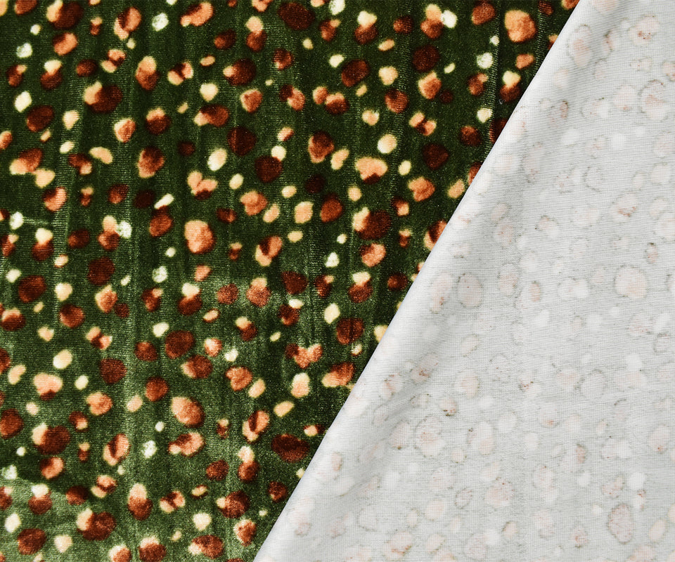 Green-Multi Poly Stretch Abstract Printed Velvet Knit Fabric