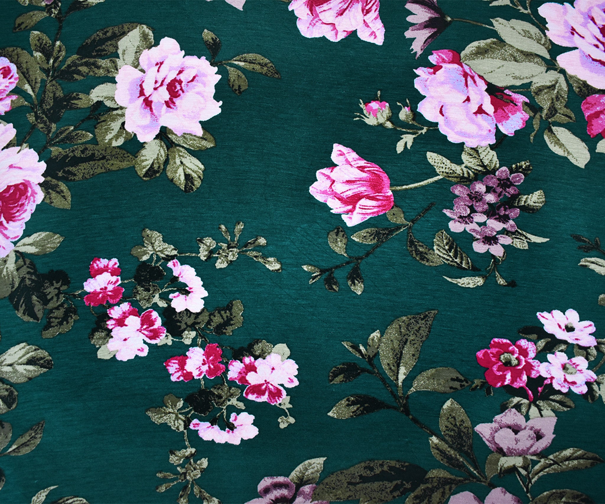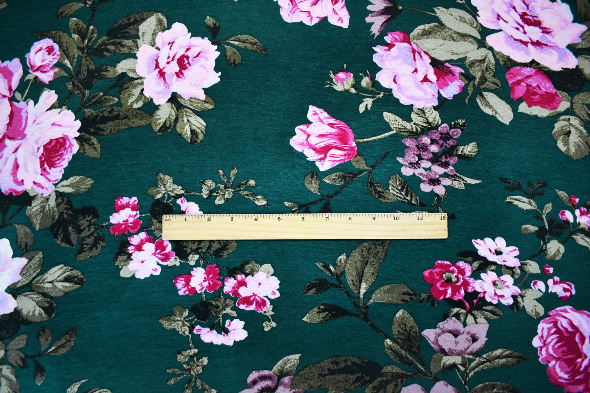 Green-Multi Rayon Stretch Spandex Floral Print Jersey Knit Fabric