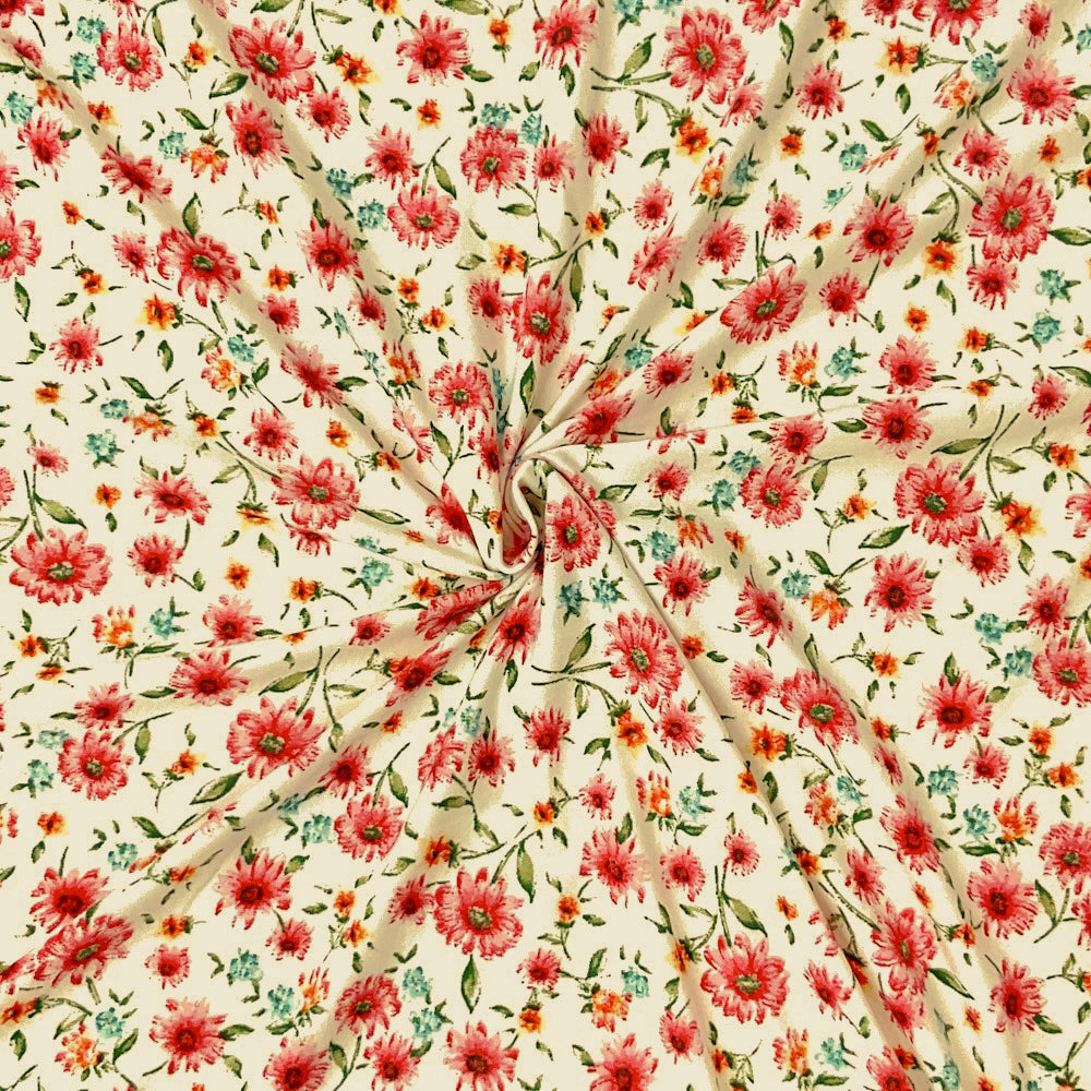 Ivory-Multi Poly Spandex Stretch Floral Print DB Jersey Knit Fabric