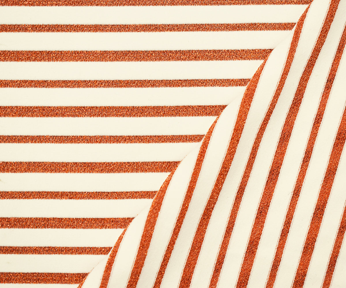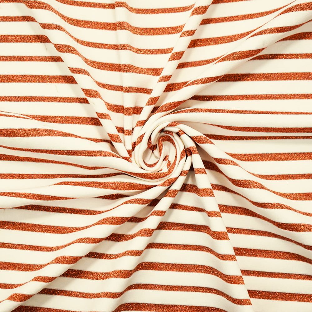 Off-White-Copper Poly Stretch Spandex Stripe Metallic Jersey Knit Fabric