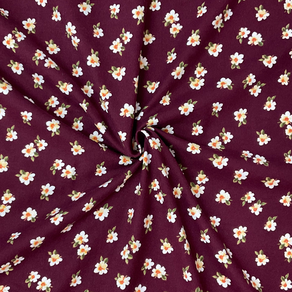 -Red-Multi Poly Spandex Stretch Floral Print Double Brush Jersey Knit Fabric