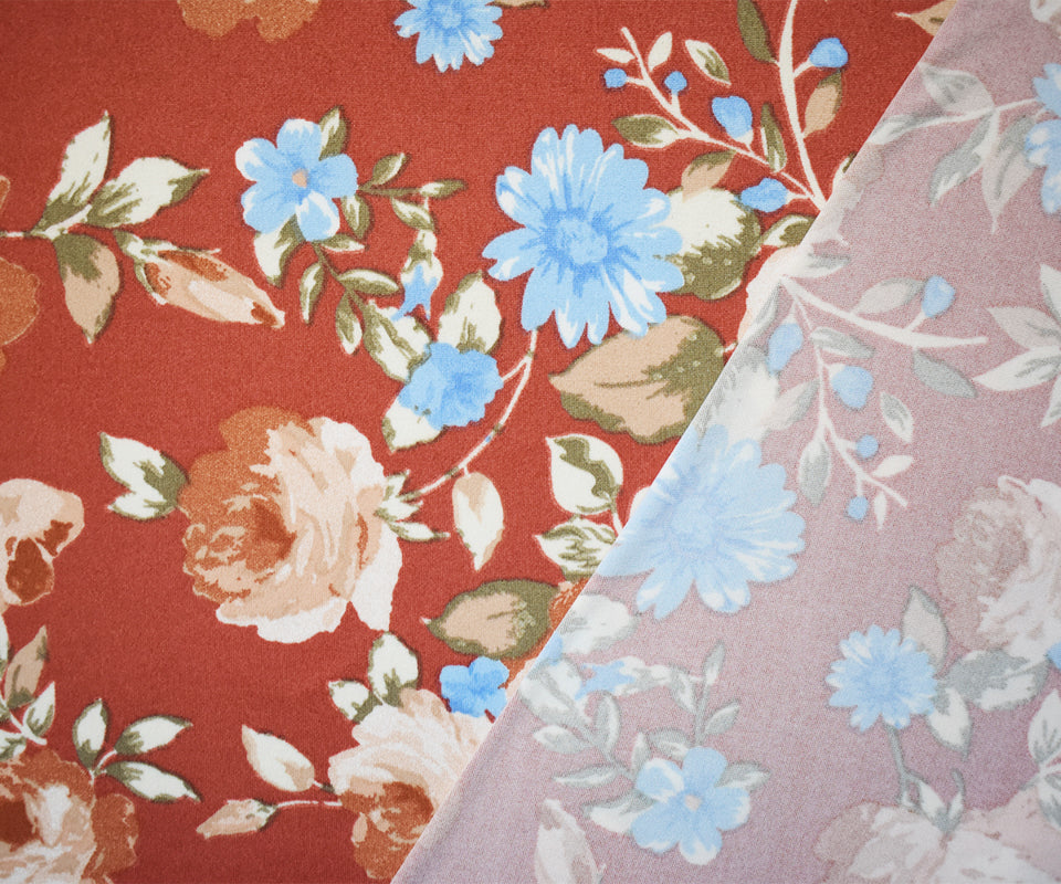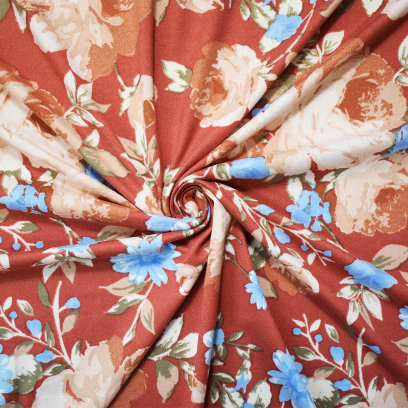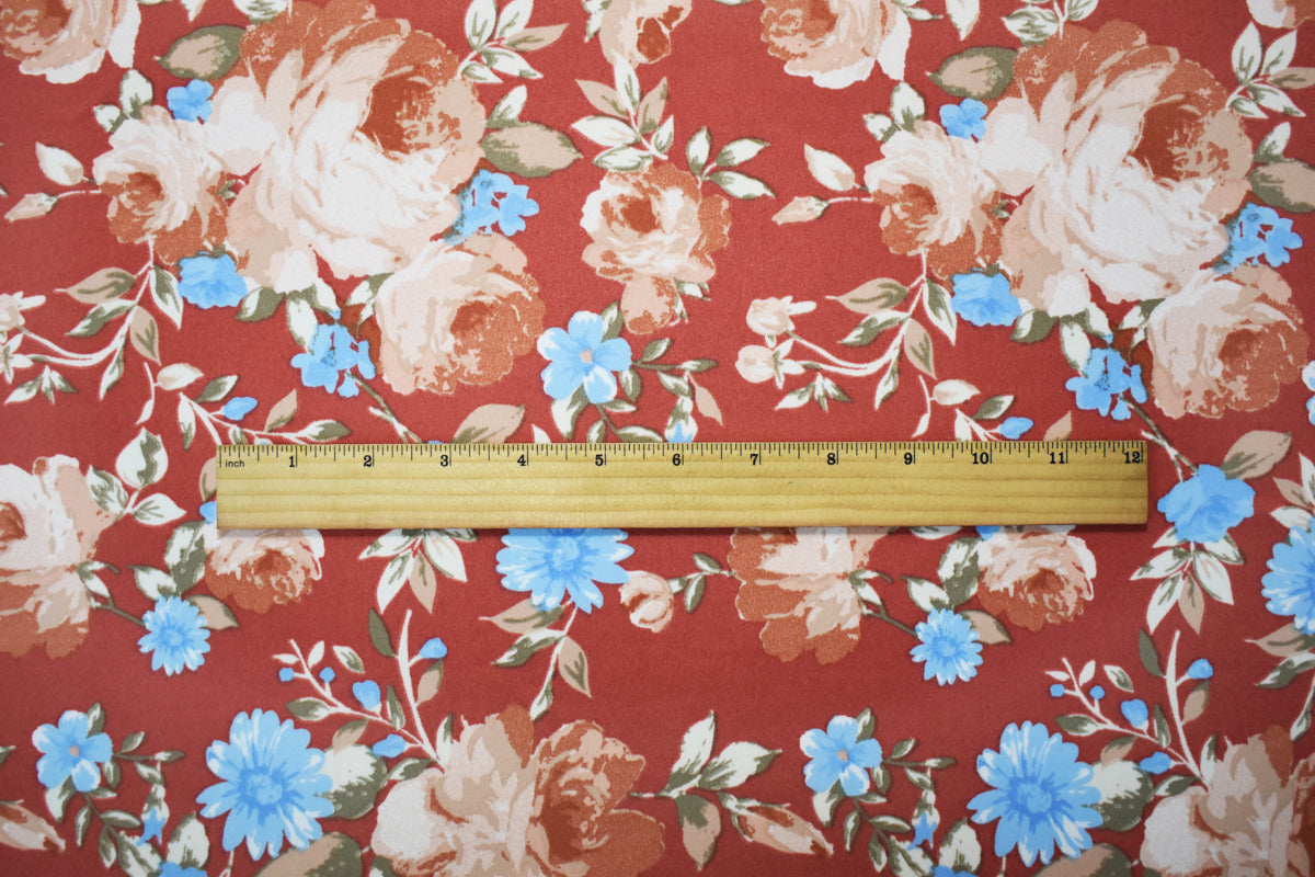 Red-Multi Poly Stretch Floral Print DB Jersey Knit Fabric