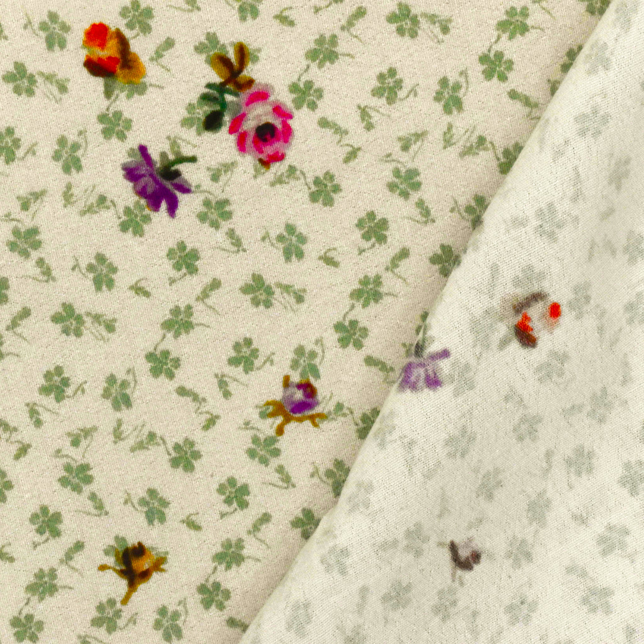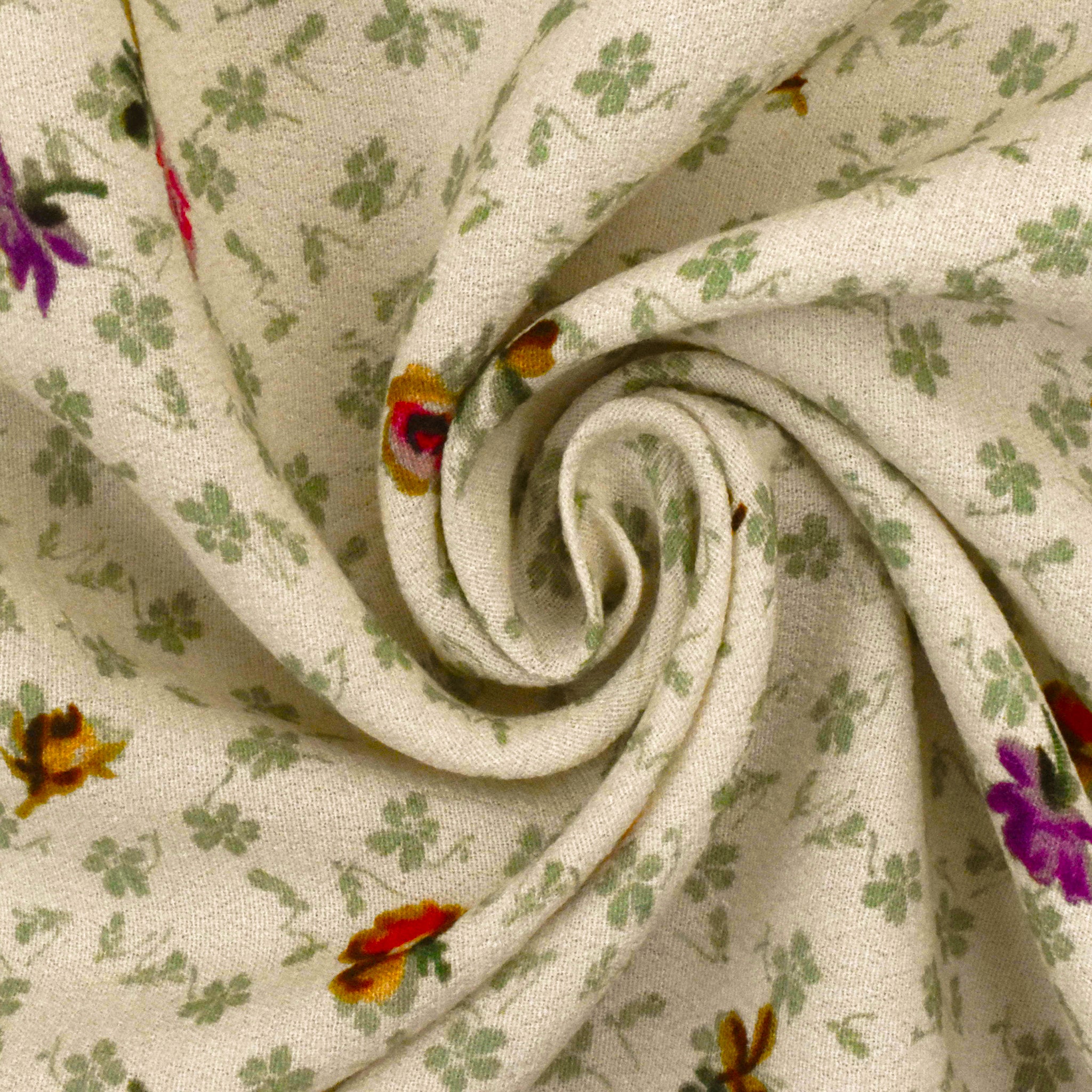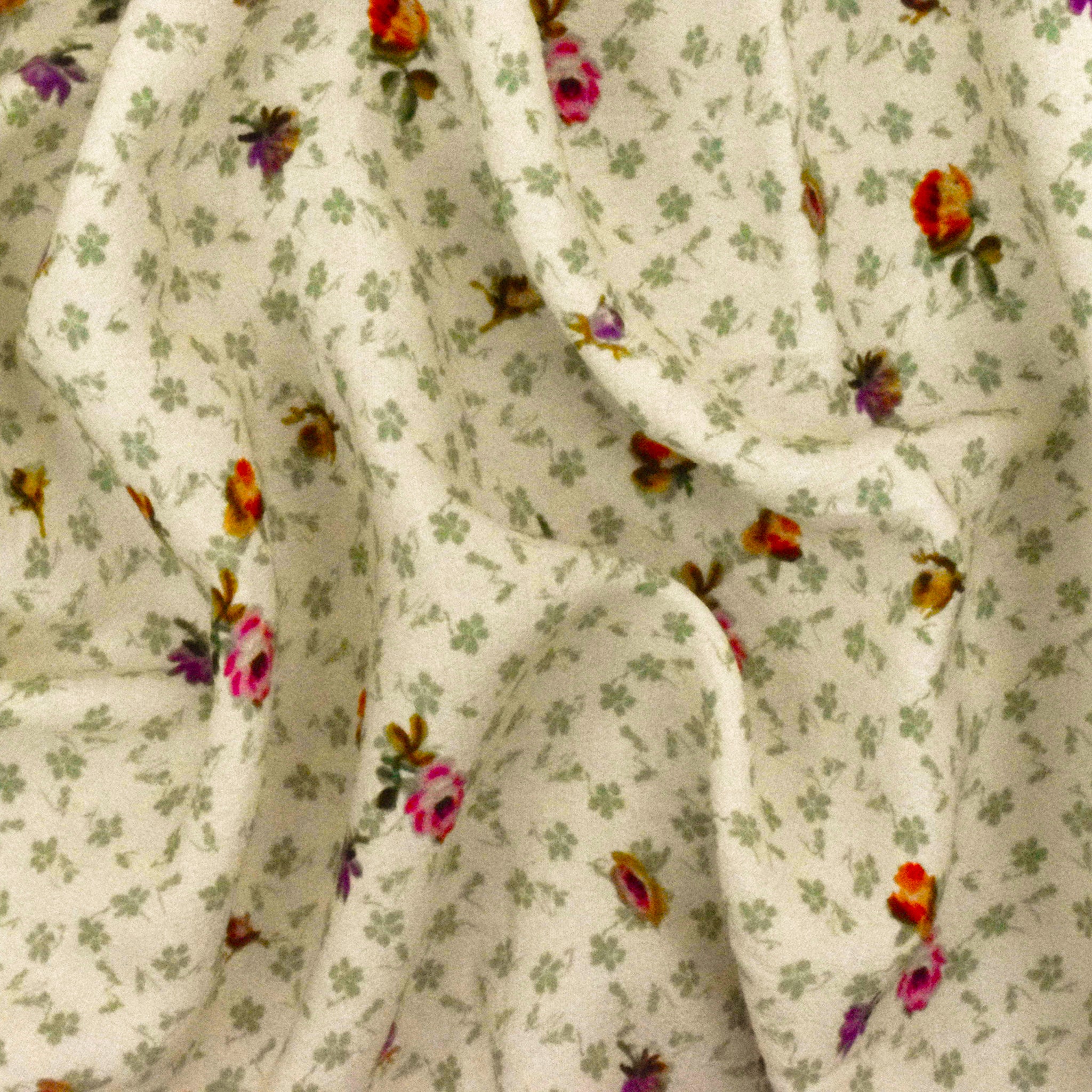 Beige-Sage-Multi Famous Designer Floral Printed Viscose Crepe Faille Fabric