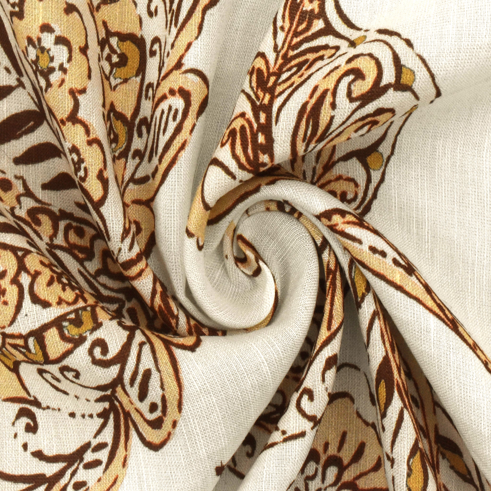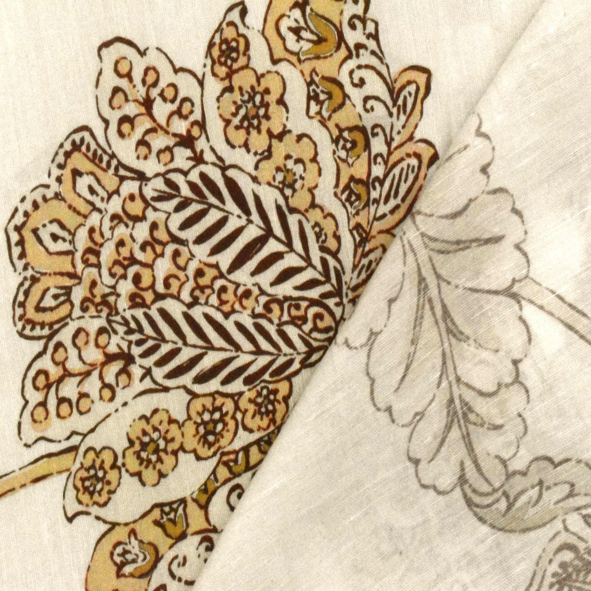 Ivory-Multi Flax Blend Famous Designer Floral Printed Slub Woven Fabric