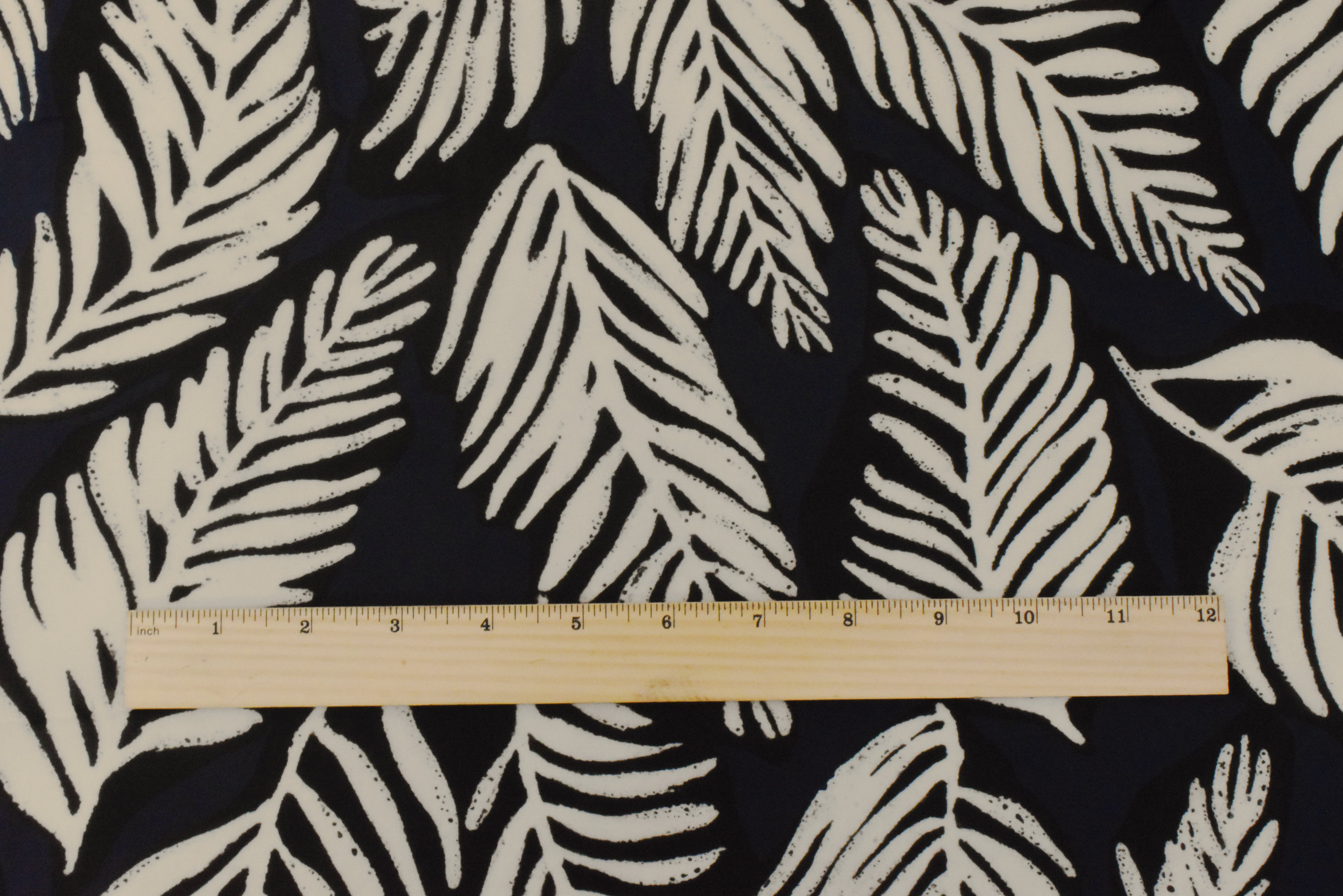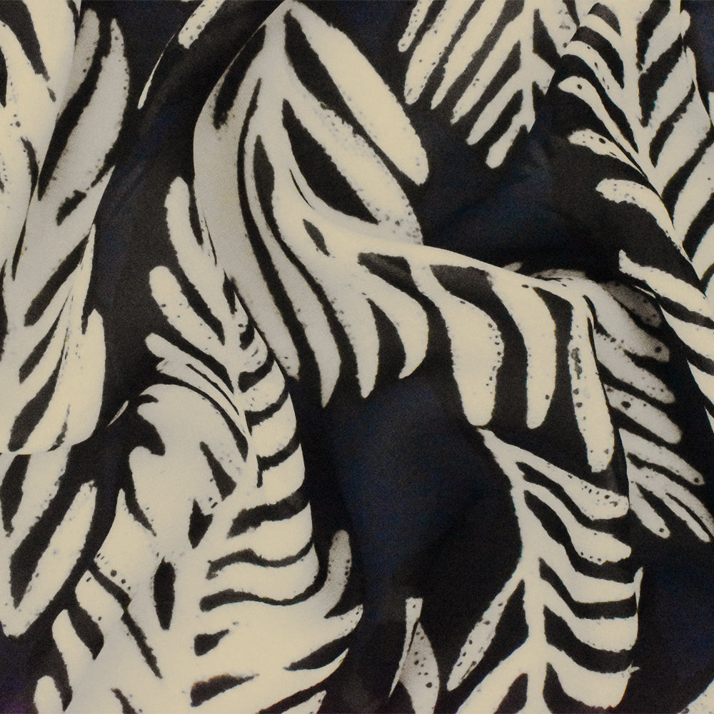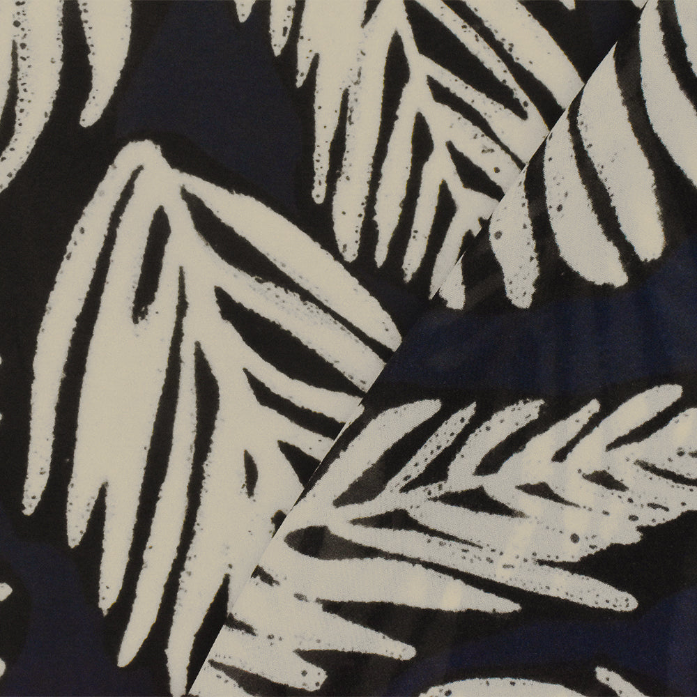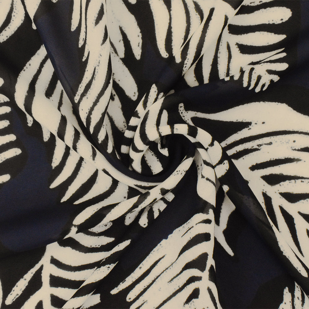Navy-Black-Beige Famous Designer Viscose Leaf Printed Chiffon Fabric