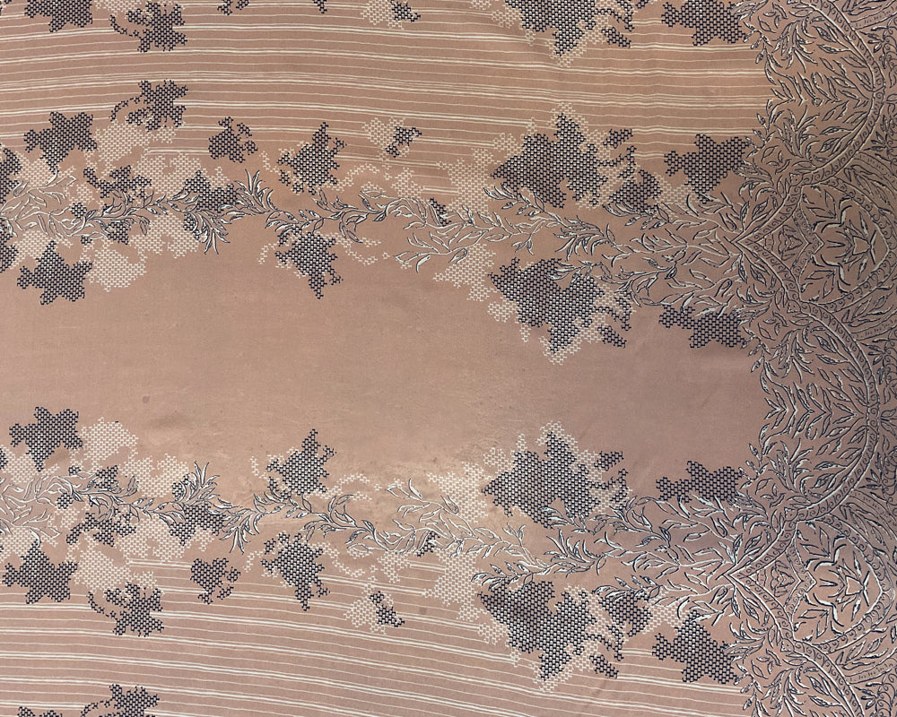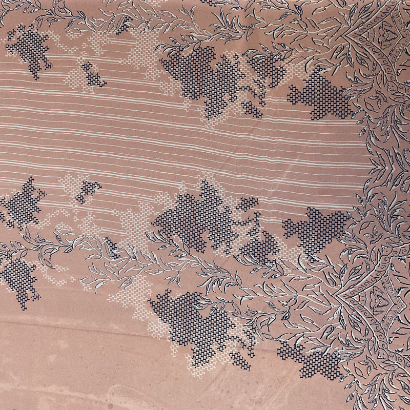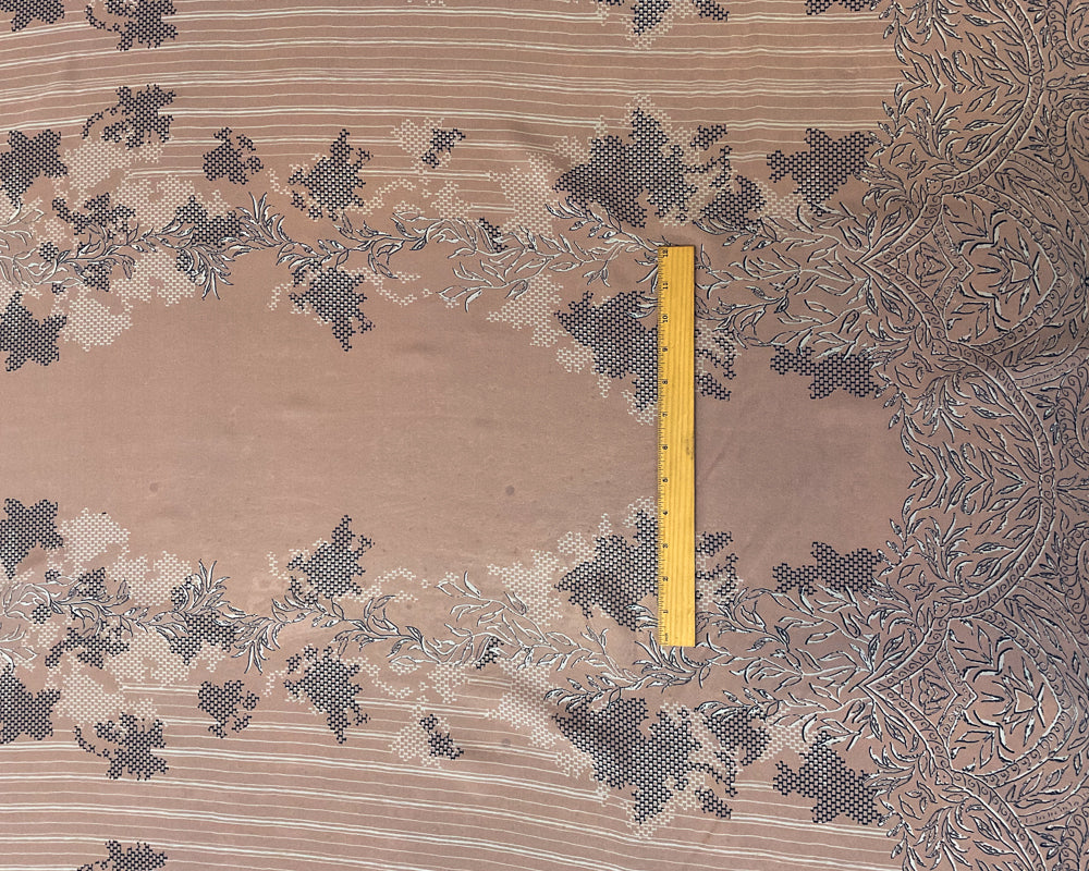 5 3/4 YD PC-Beige-DK Blue-White Vine Honeycomb Floral Silk Designer Remnant Fabric