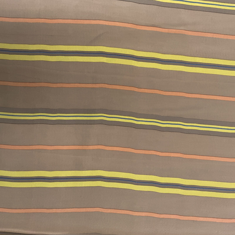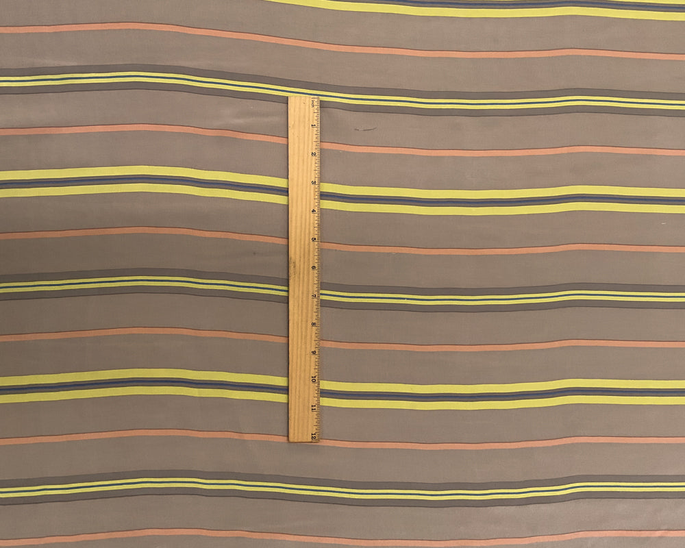 1 1/2 YD PC-Taupe-Yellow-Blue-Coral Multi Stripe Silk Designer Remnant Fabric