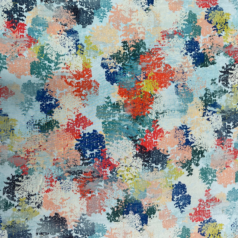2 1/2 YD PC-Muted Blue-Orange-Coral-Yellow Scattered Confetti Silk Designer Remnant Fabric
