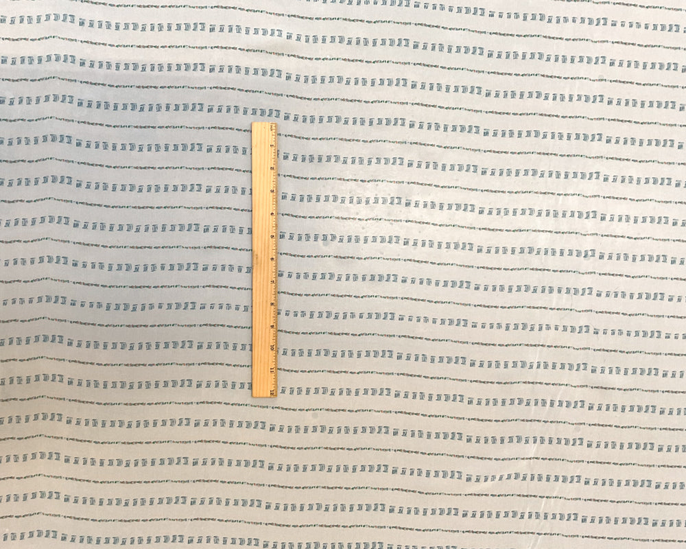 2 1/2 YD PC-Off-White- Soft Blue-Coral Absrtact Glyphs Columns Silk Designer Remnant Fabric