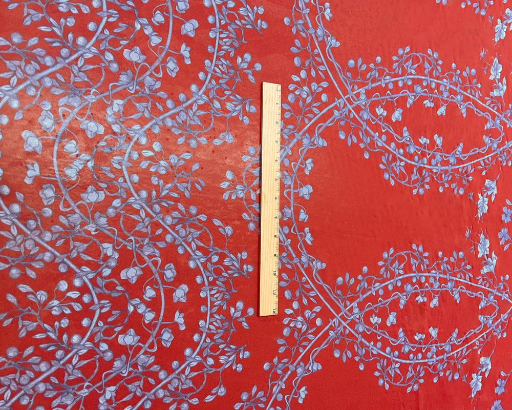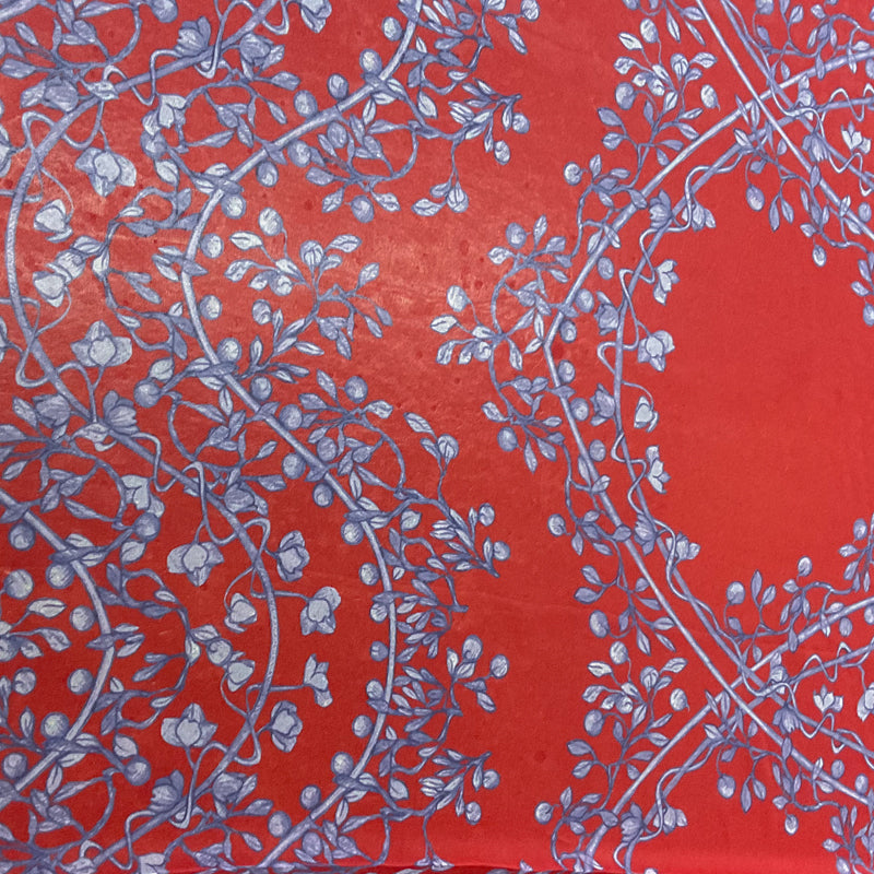 2 1/2 YD PC-Red-Blue-White Vine Wave Floral Silk Designer Remnant Fabric