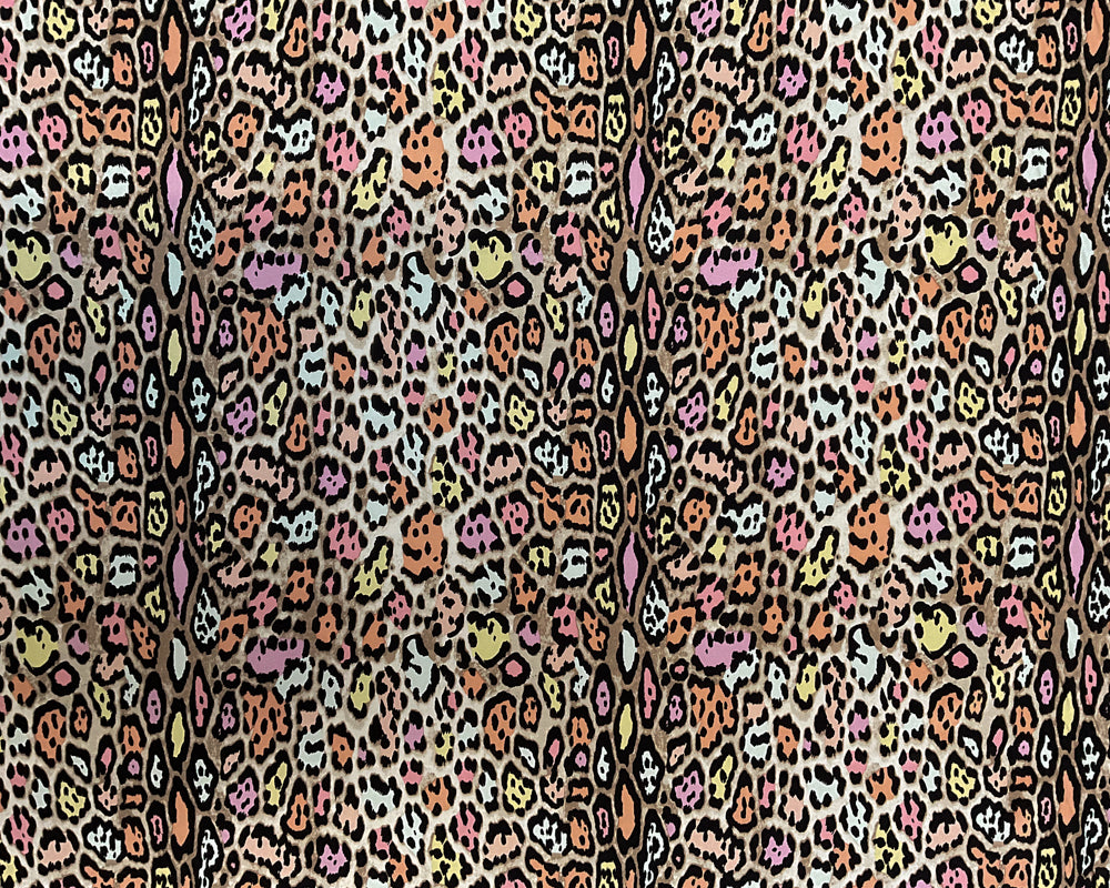 2 1/2 YD PC-Tan-Black-Orange-Pink-Yellow Eclectic Cheetah Silk Designer Remnant Fabric