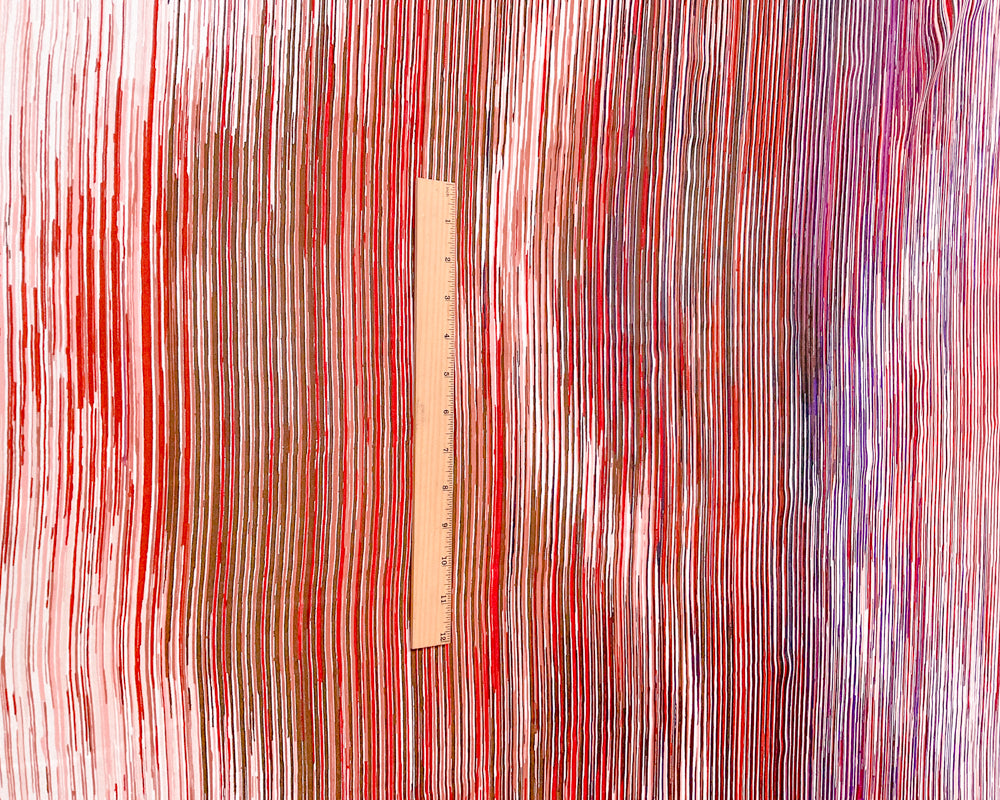 3 1/2 YD PC-Black-Burgundy-Ivory-Coral Brushed Stripes Silk Designer Remnant Fabric