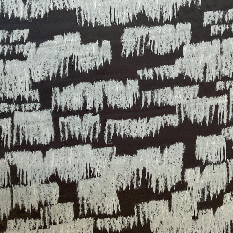 3 1/2 YD PC-Black-White Brushstroke Print Silk Designer Remnant Fabric