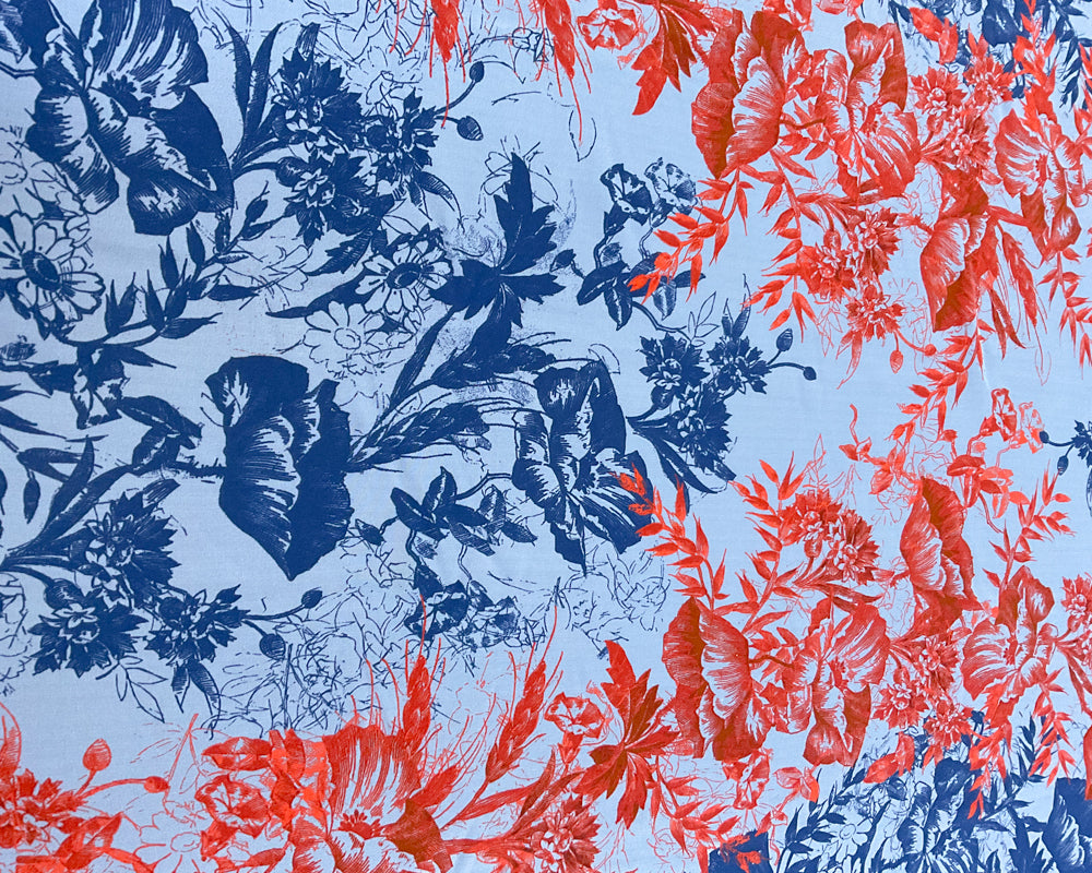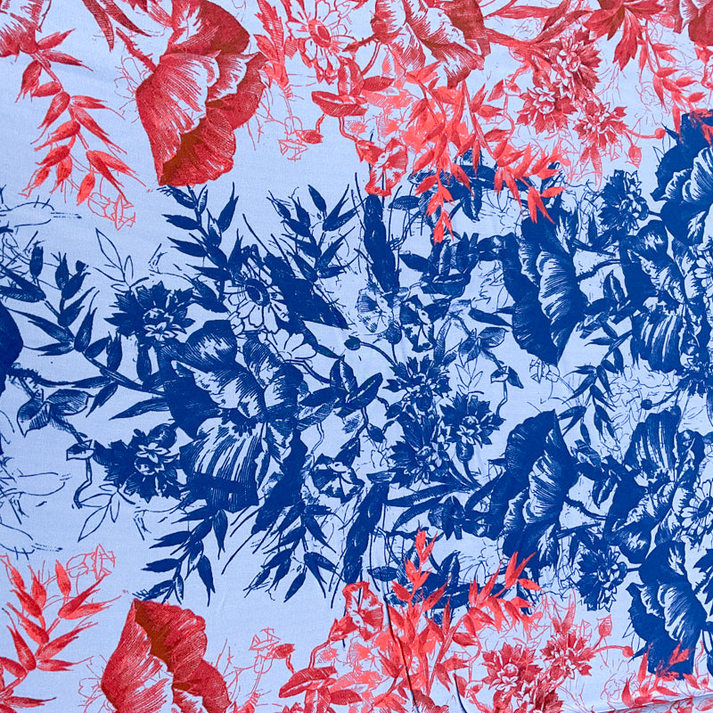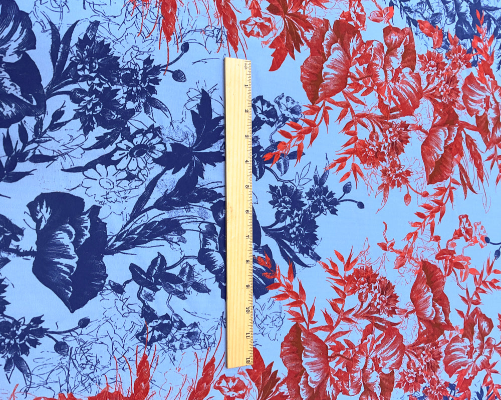 3 1/2 YD PC-Blue-Red Floral Silk Designer Remnant Fabric