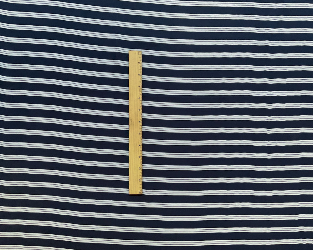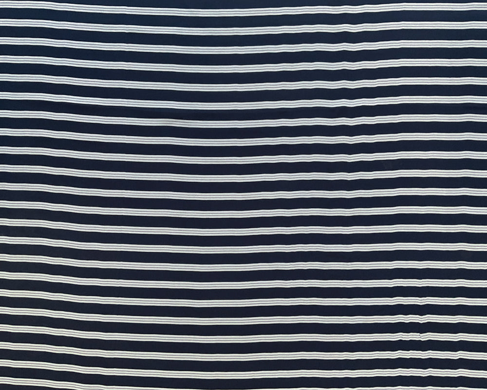 3 1/4 YD PC-Black-Ivory Double Stripe Silk Designer Remnant Fabric