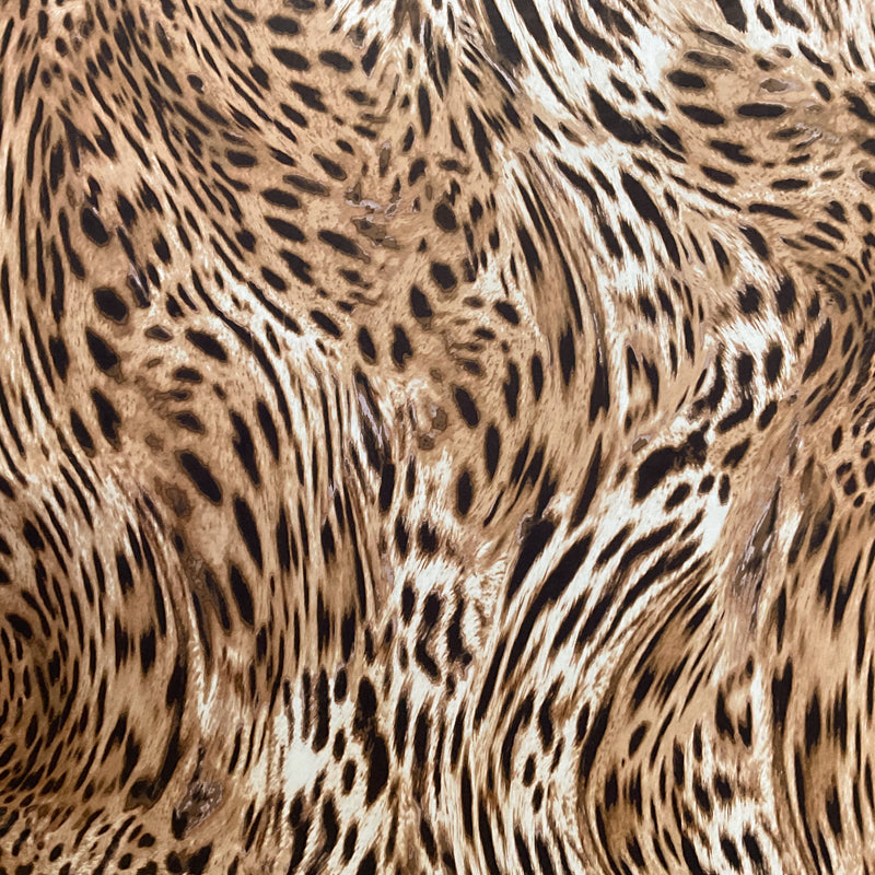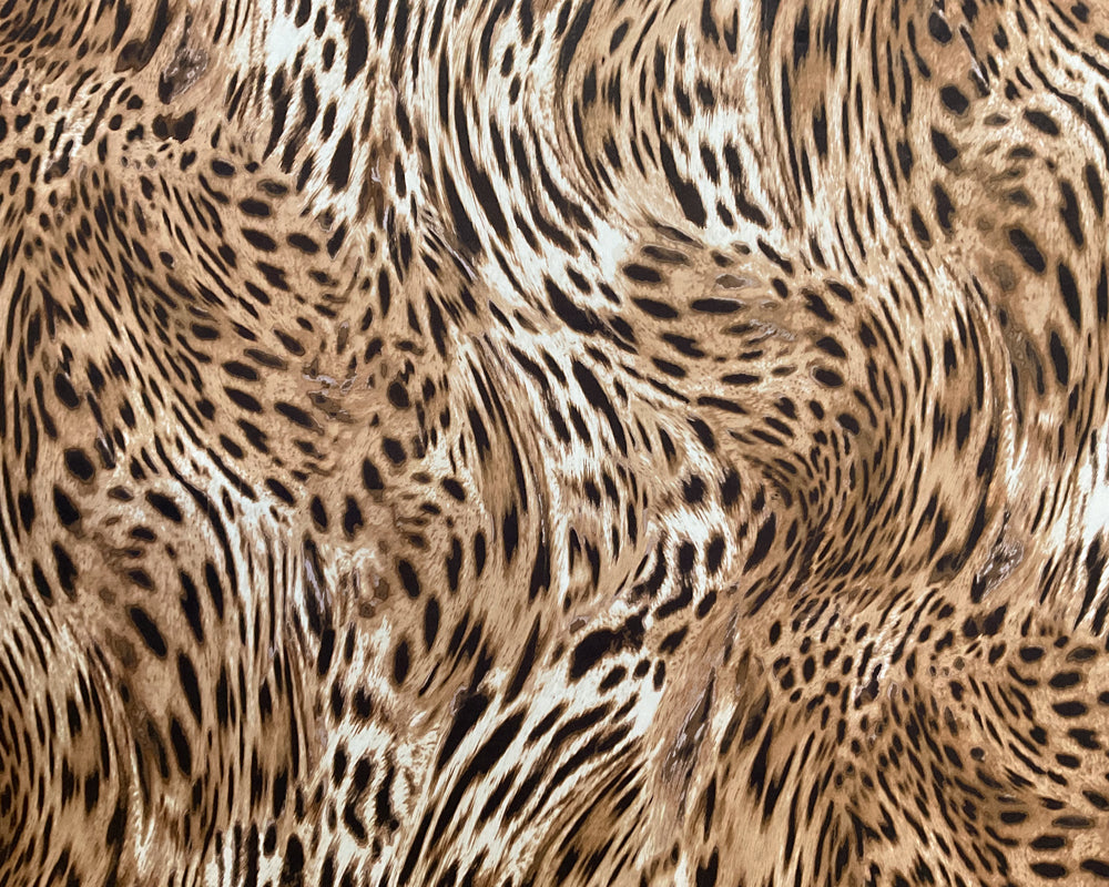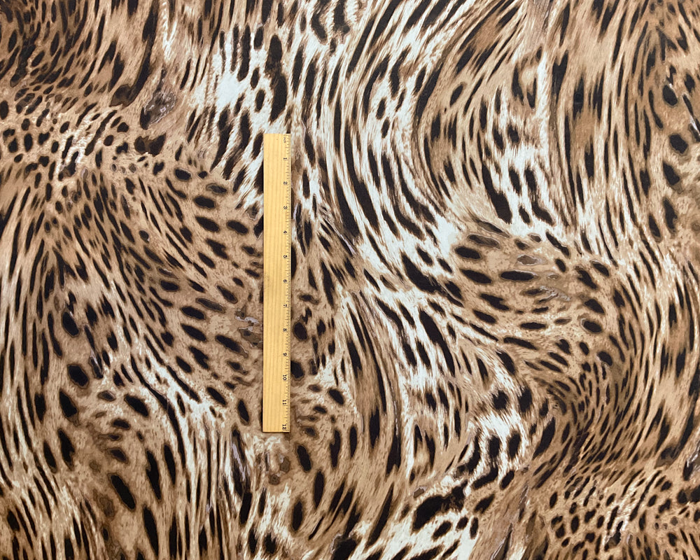 3 1/4 YD PC-Brown-Tan-Ivory Tiger Print Silk Designer Remnant Fabric