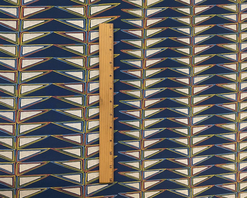 3 1/4 YD PC-Navy-Ivory-Orange-Yellow-Green Abstract Geo Silk Designer Remnant Fabric