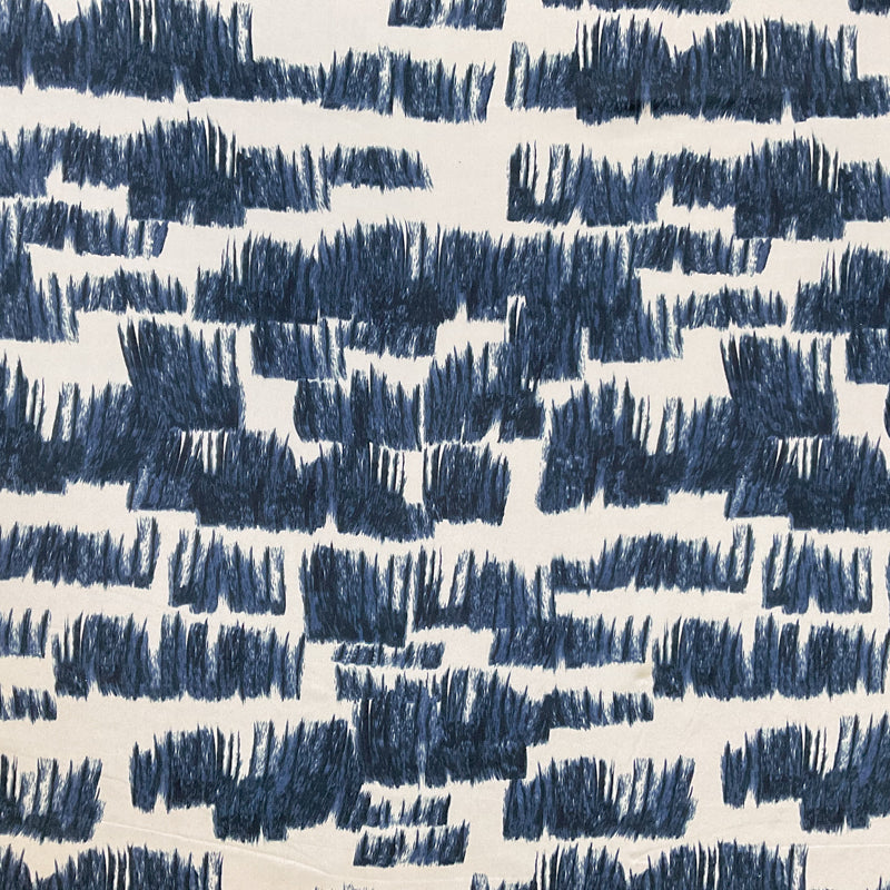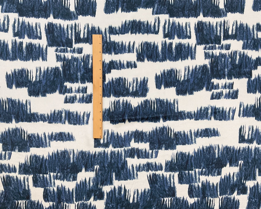 3 1/4 YD PC-Navy-White Brushstrokes Silk Designer Remnant Fabric
