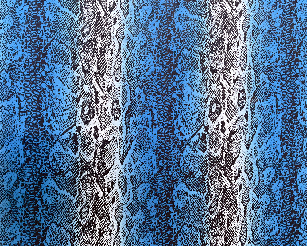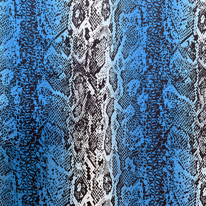 3 3/4 YD PC-Blue-Black Snakeskin Print Silk Designer Remnant Fabric