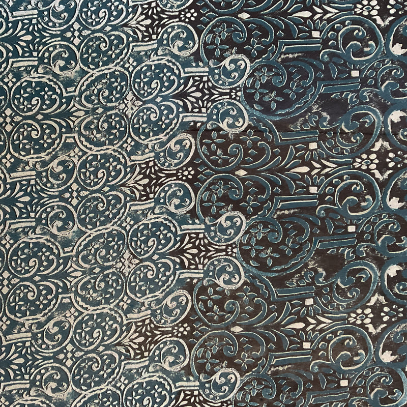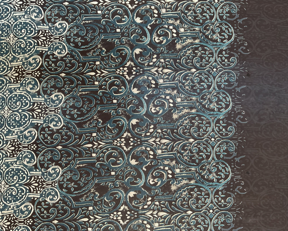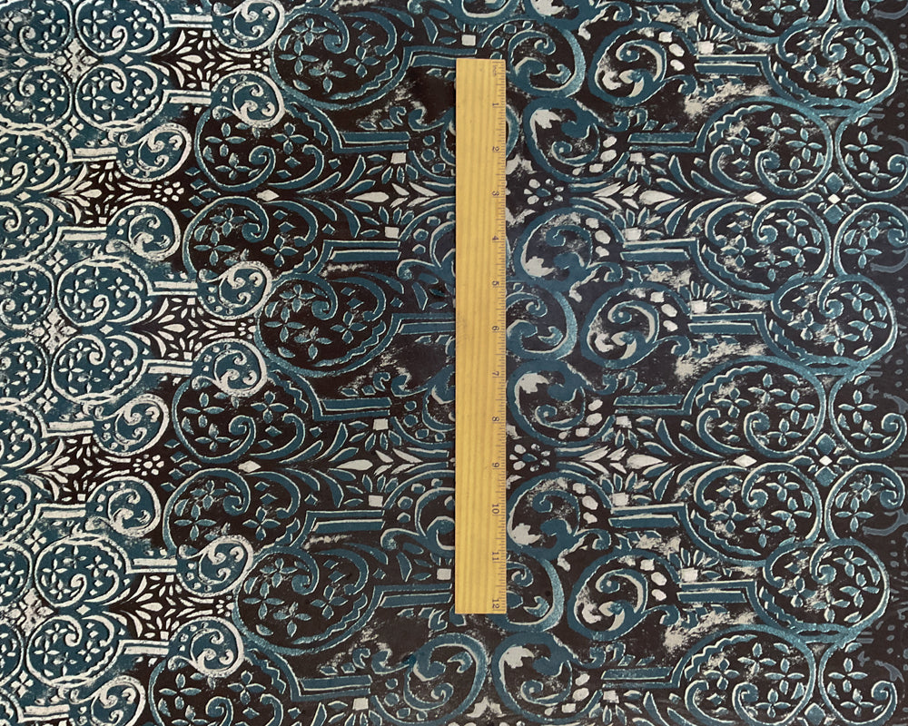 3 YD PC-Blue-Gray-Off White Geometric Border Print Silk Designer Remnant Fabric
