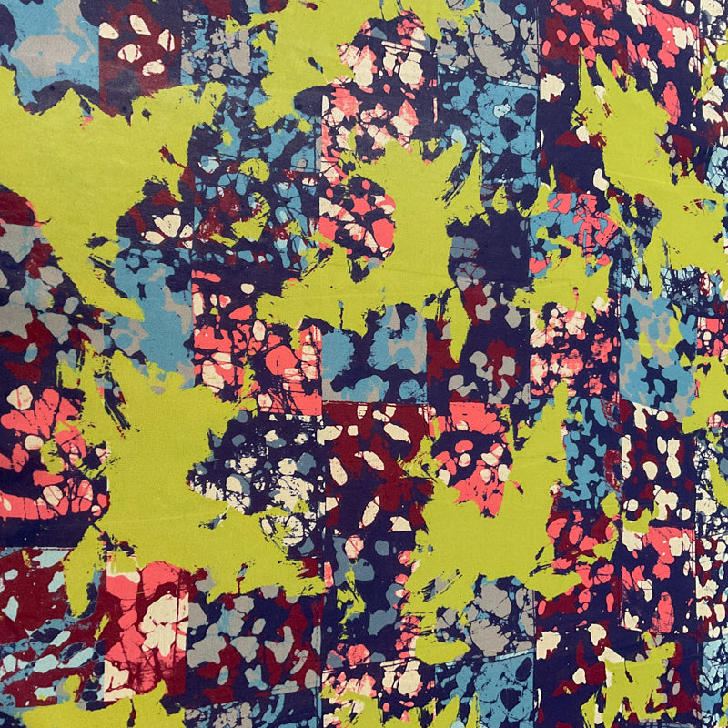 3 YD PC-Lime Green-Ivory-Black-Coral-Blue Clusters Silk Designer Remnant Fabric