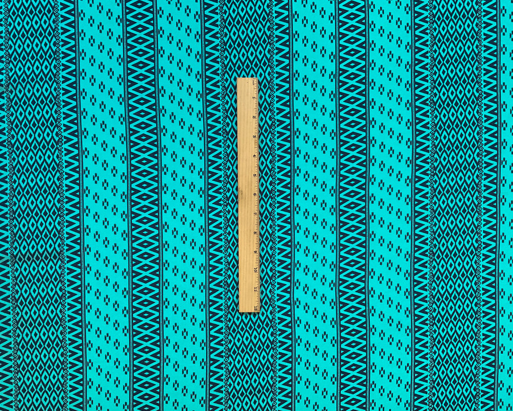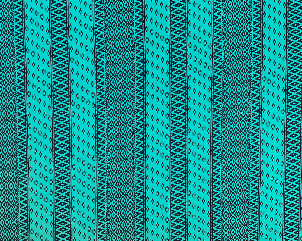 -3 YD PC-Turquoise Black Aztec Stripe Silk Remnant Fabric
