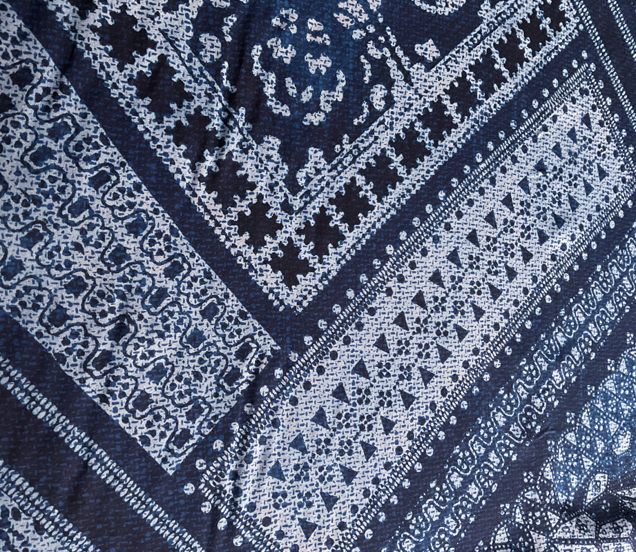 4 1/2 YD PC-Blue-Lt Blue Patchwork Silk Designer Remnant Fabric