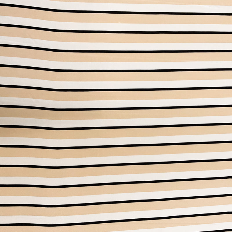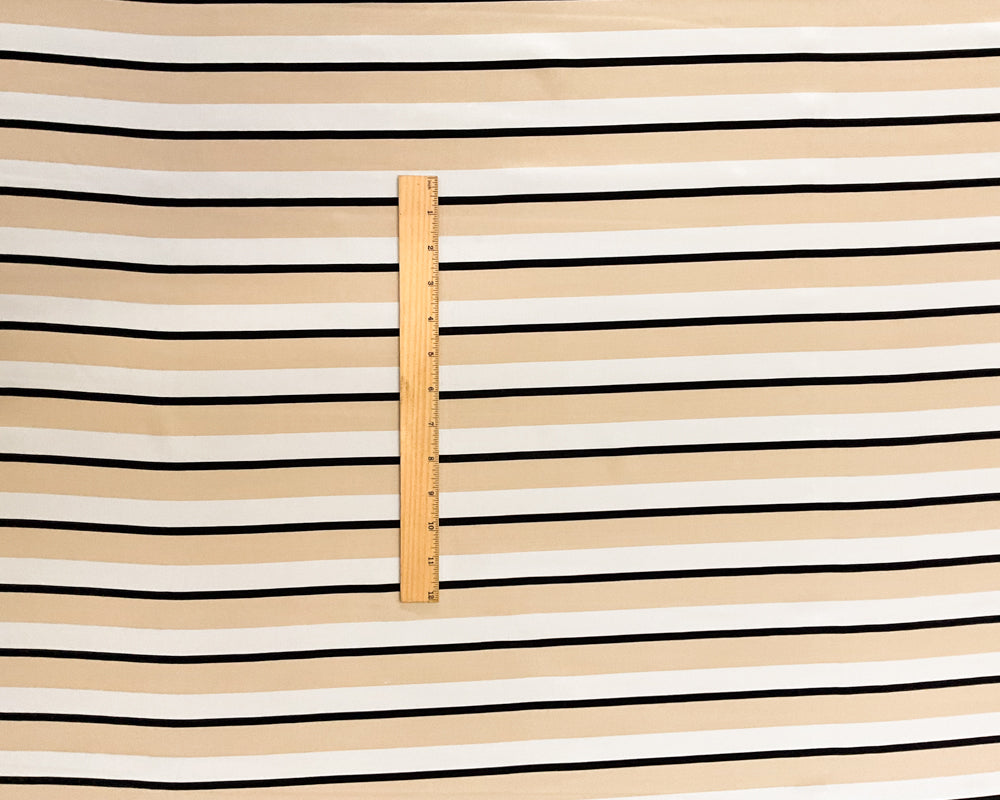4 1/2 YD PC-White-Tan-Black Large Stripe Silk Designer Remnant Fabric