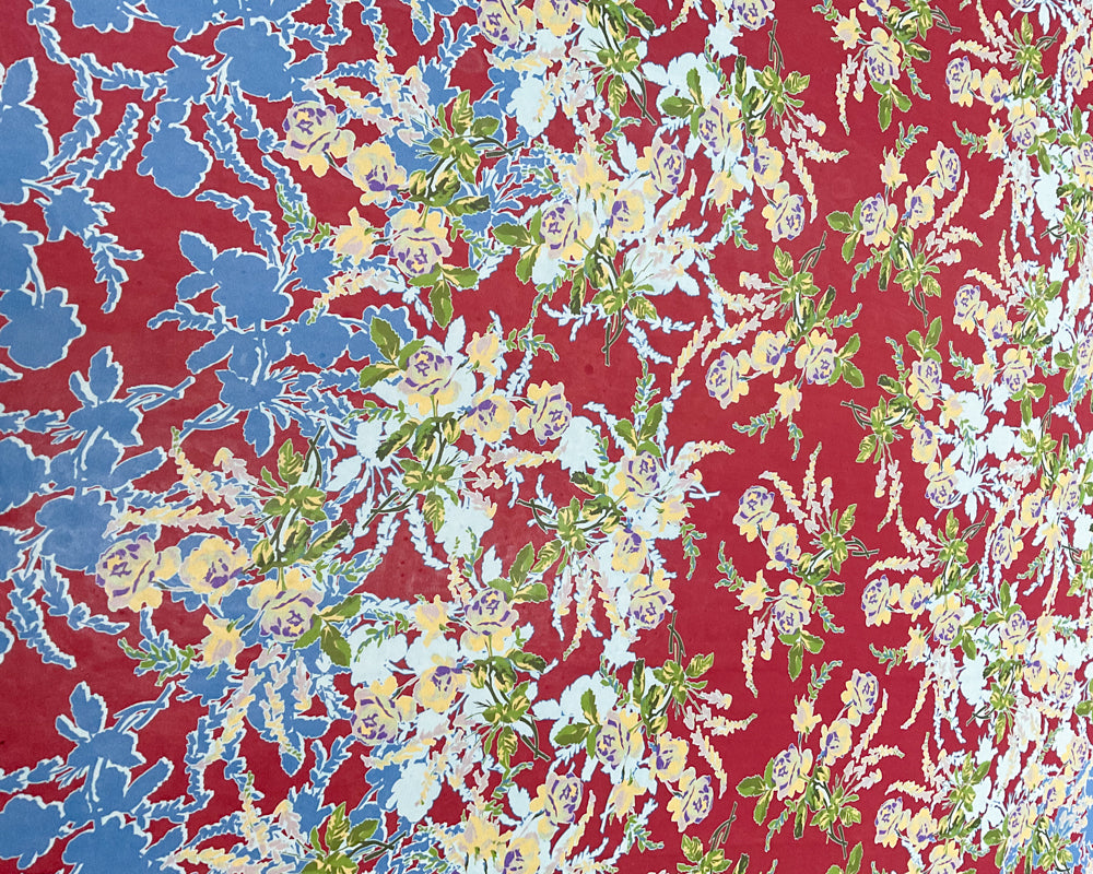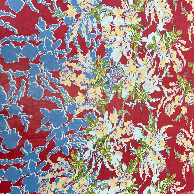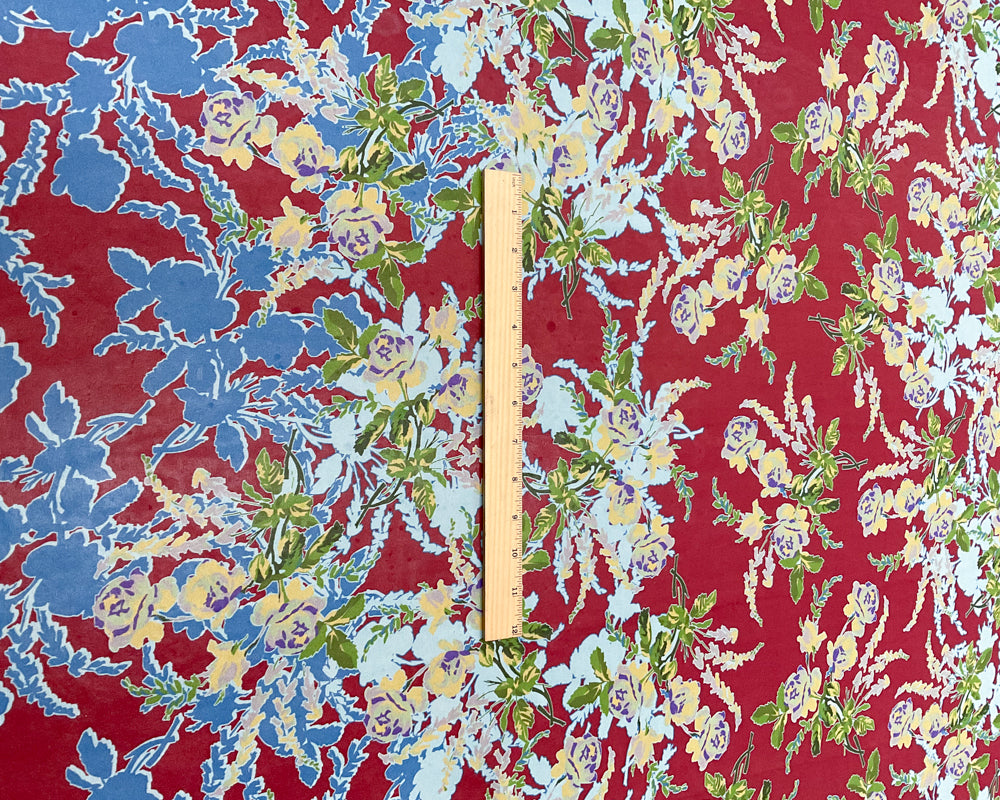 4 1/4 YD PC-Burgundy-Blue-Yellow-Green Floral Silk Designer Remnant Fabric