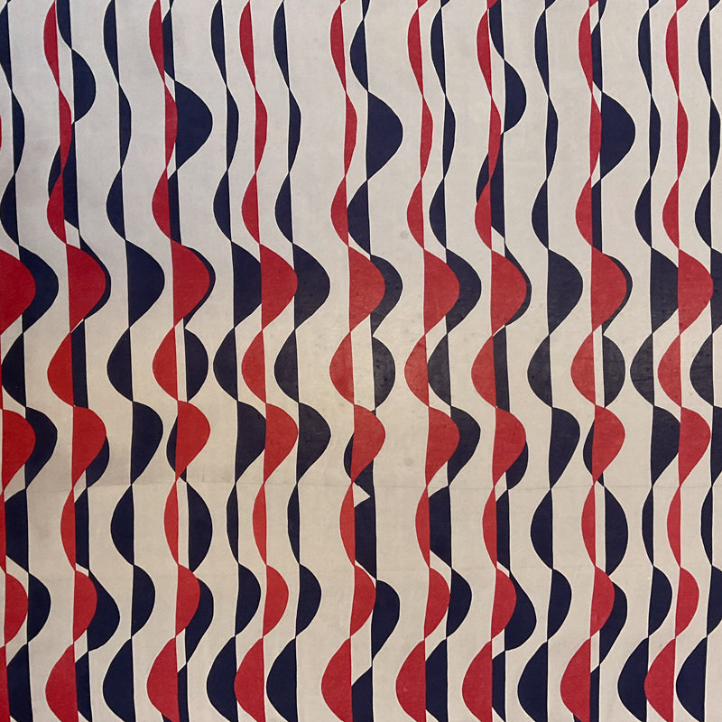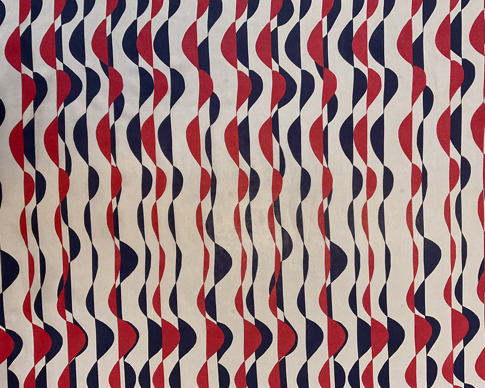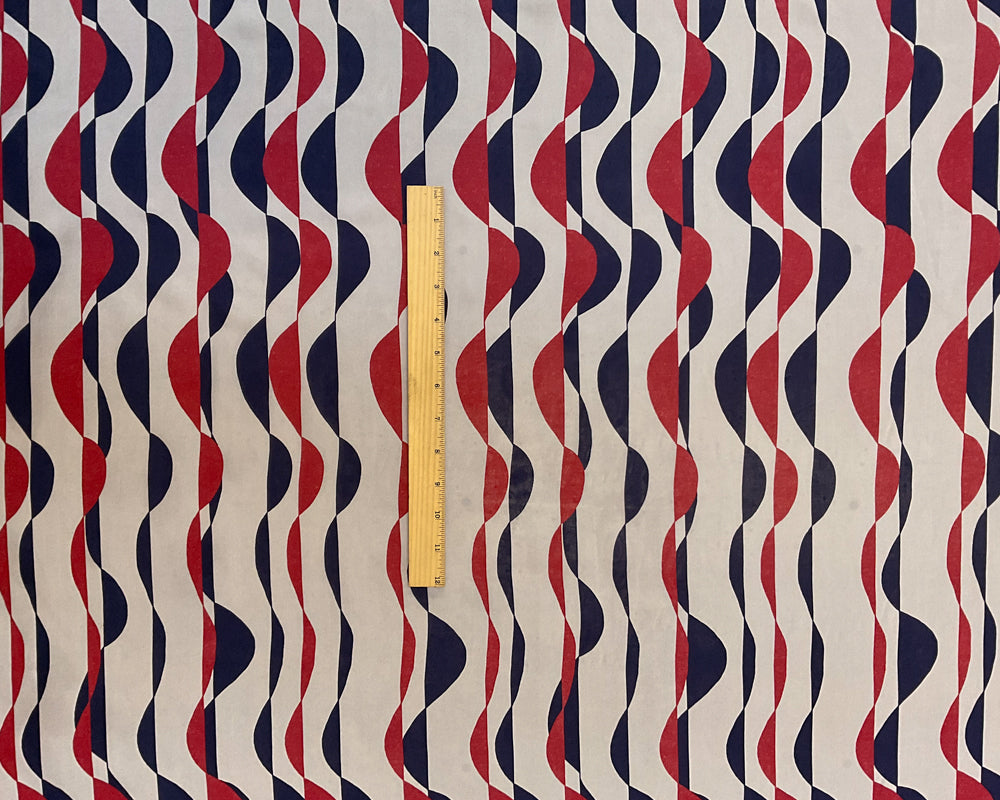 4 1/4 YD PC-Off-White-Red-Black Geo Waves Silk Designer Remnant Fabric