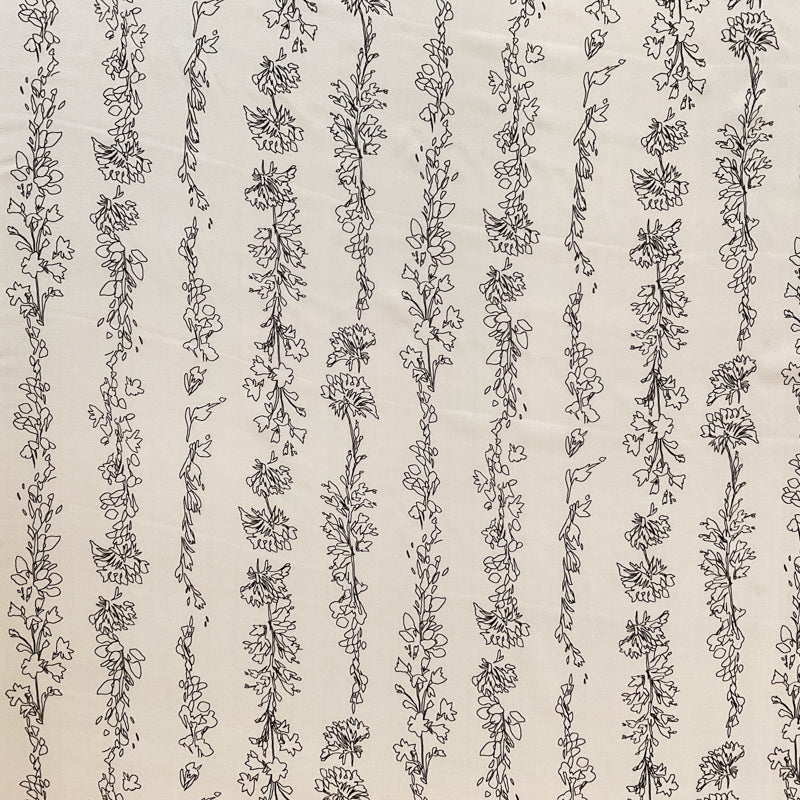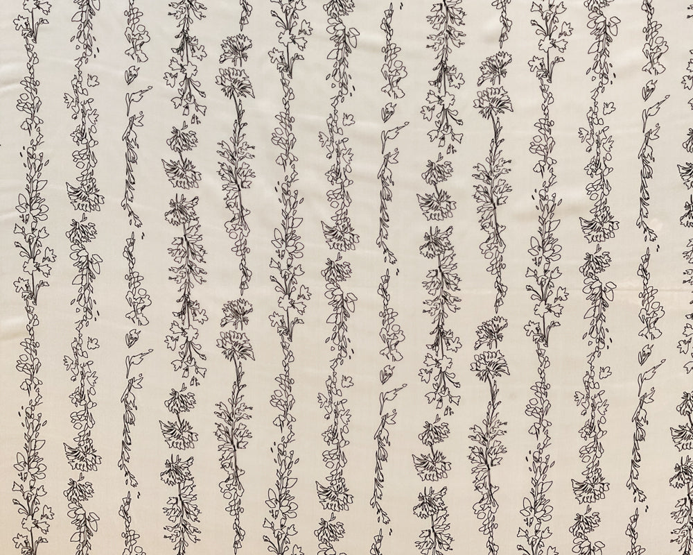 4 YD PC-Ivory-Black Viney Floral Strpe Silk Designer Remnant Fabric